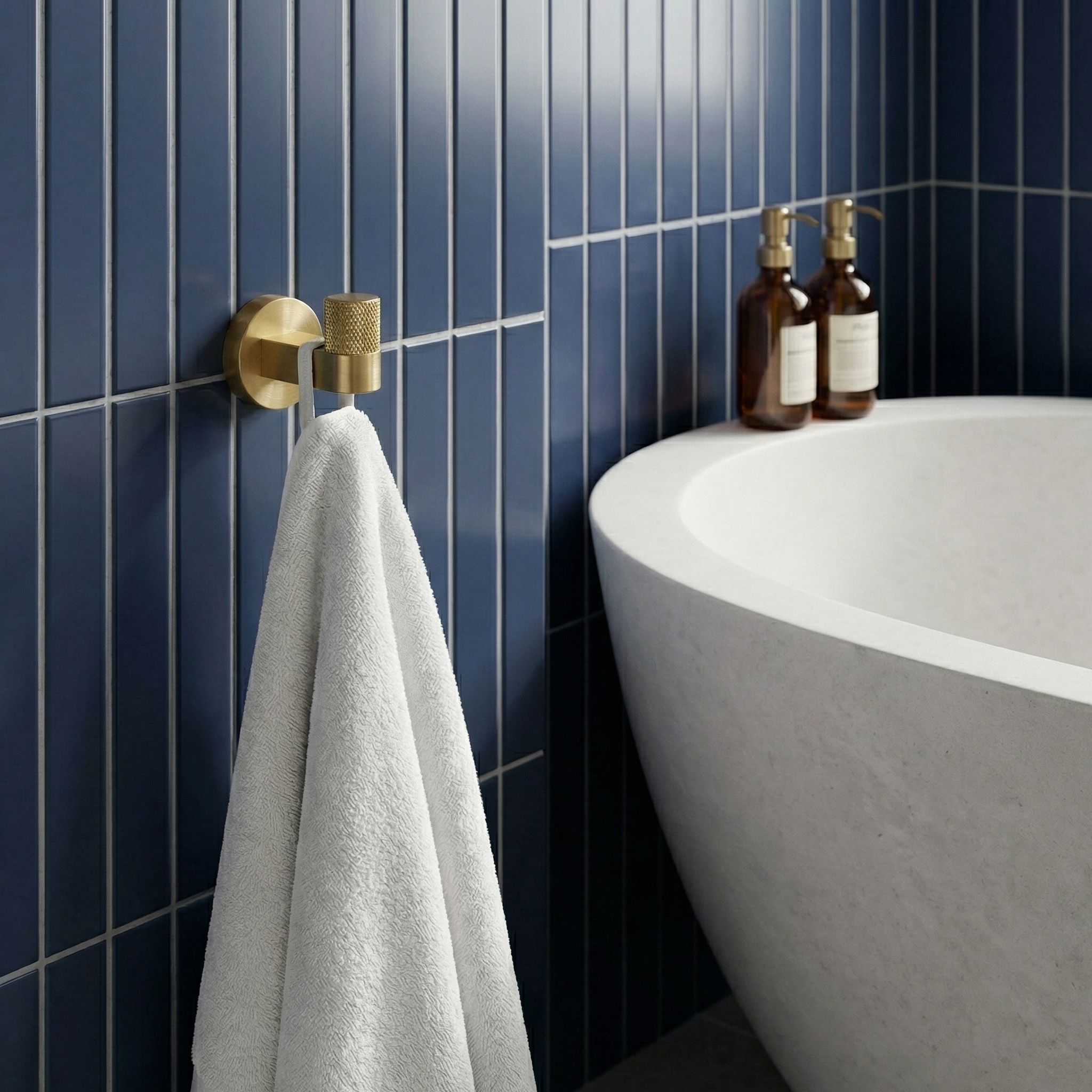 Háčik je vyrobený z kovu, ktorý zaručuje plnú stabilitu a odolnosť voči vlhkosti kúpeľňového prostredia. Napriek kompaktným rozmerom zvládne bez problémov hmotnosť mokrého uteráka aj župana. Matný zlatý povrch navyše efektívne maskuje vodné škvrny a drobné odtlačky, takže háčik vyzerá čisto bez každodennej starostlivosti.