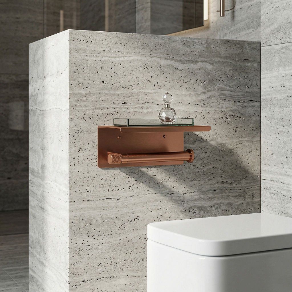 Rea Ori, držiak na toaletný papier s poličkou, 39105A, medená matná, REA-98066