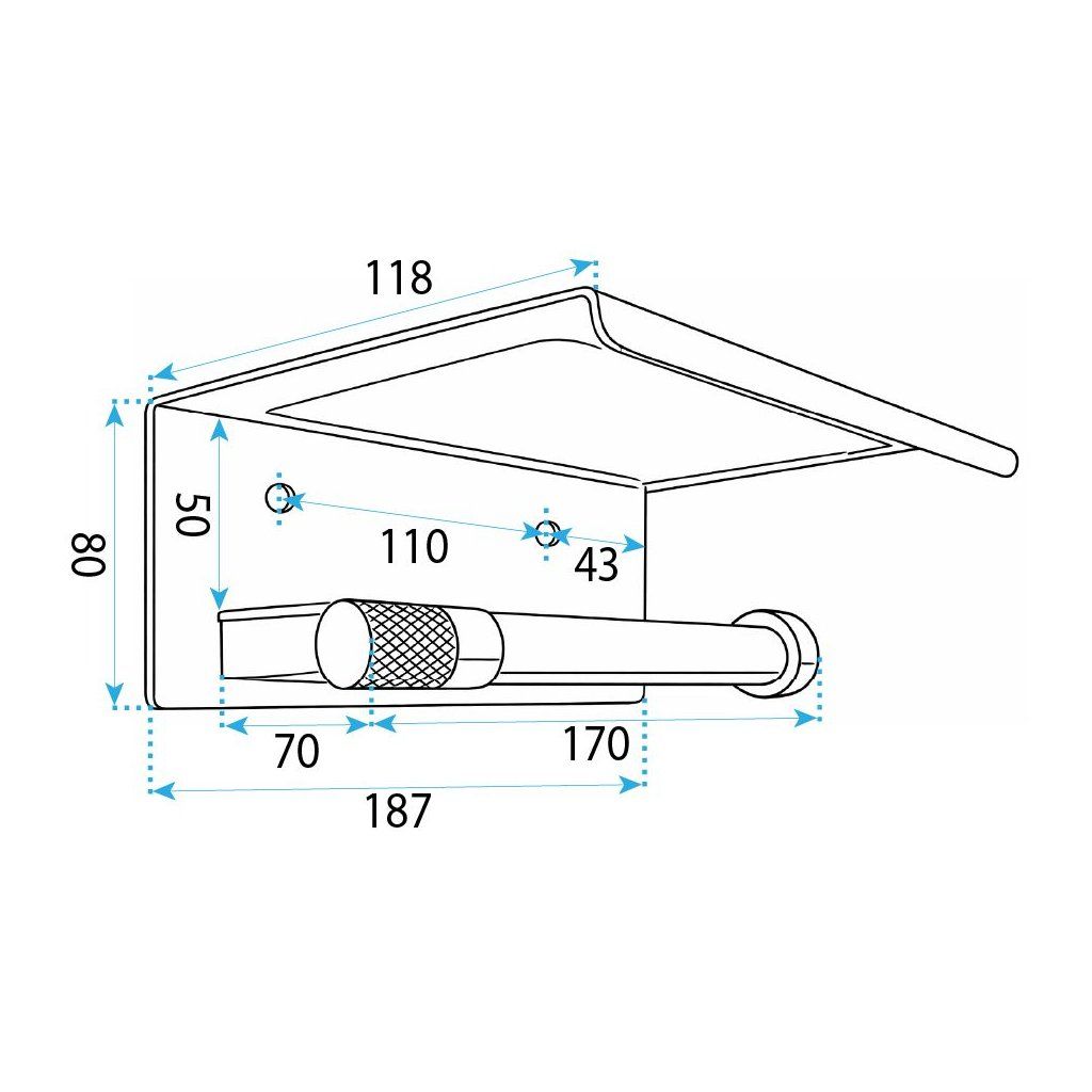 Držiak je vyrobený z kovu, ktorý zaručuje plnú stabilitu a odolnosť voči vlhkosti kúpeľňového prostredia. Montáž na skrutky priamo do steny zabezpečuje, že ani pri zaťaženej poličke nedôjde k povoleniu alebo pohybu — každodenné používanie je bezpečné a spoľahlivé.