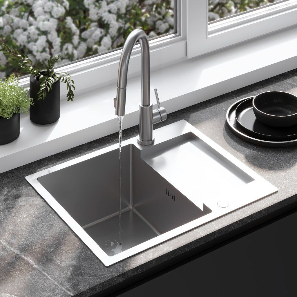 Rea Paul, 1-komorový oceľový drez 600x480x185 mm, brúsená oceľ, ZLE-06009