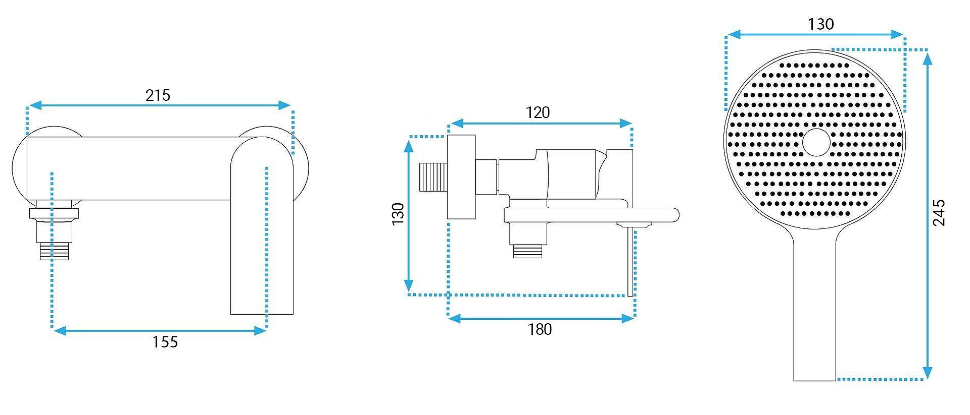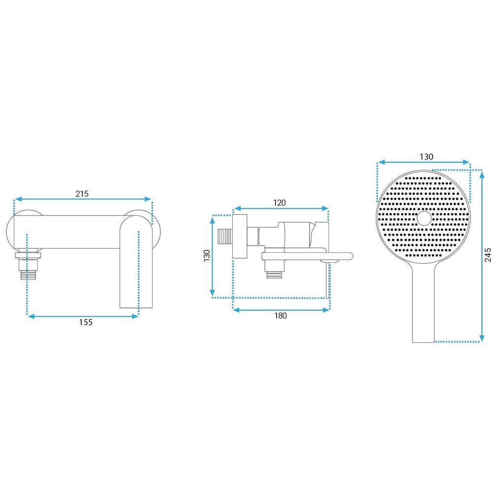 Nástenná montáž batérie Prime umožňuje vytvoriť usporiadanú kúpaciu zónu bez armatúry na okraji vane. Rozstup prípojok 155 mm s pripojením 1/2 cala zodpovedá štandardnej inštalácii. Výška batérie 130 mm a dosah pohyblivého ramena 180 mm zaručujú pohodlný dosah k celej vani.