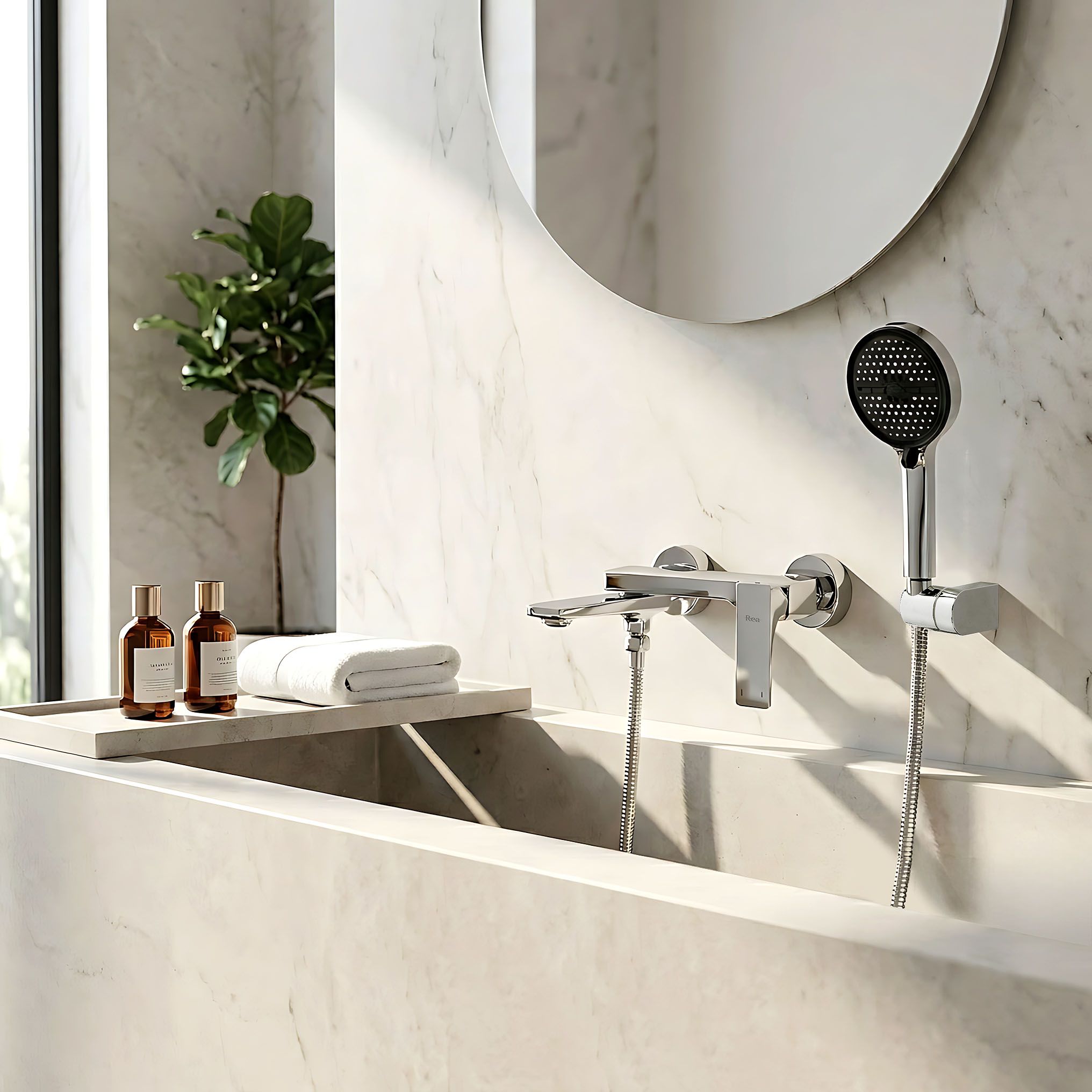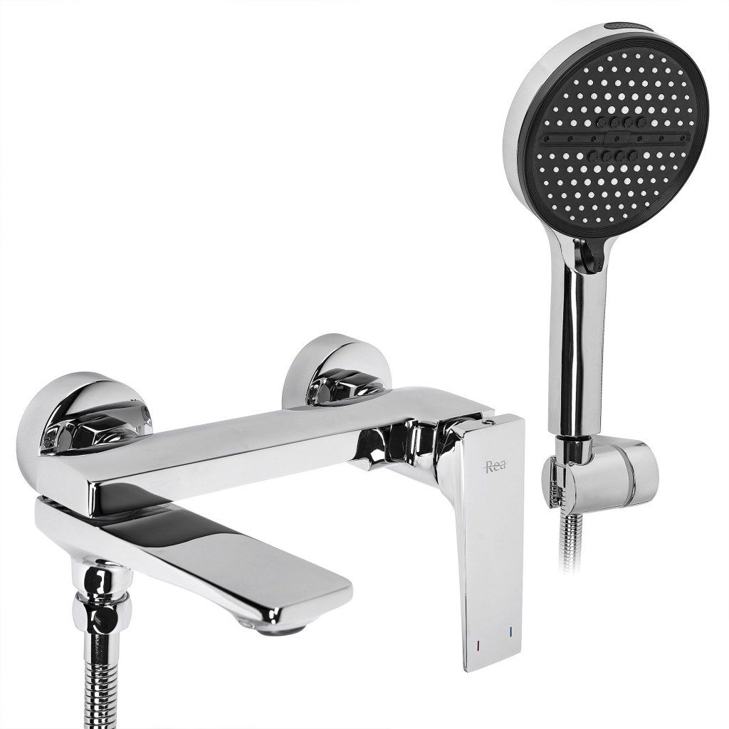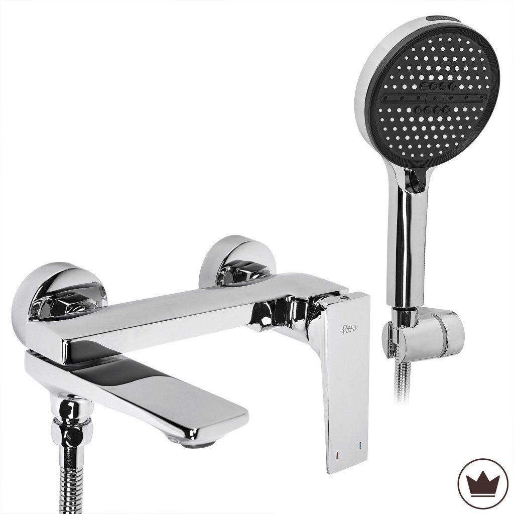 Rea Prime Premium, nástenná vaňová batéria s ručnou sprchovou súpravou, chrómová, REA-B6749