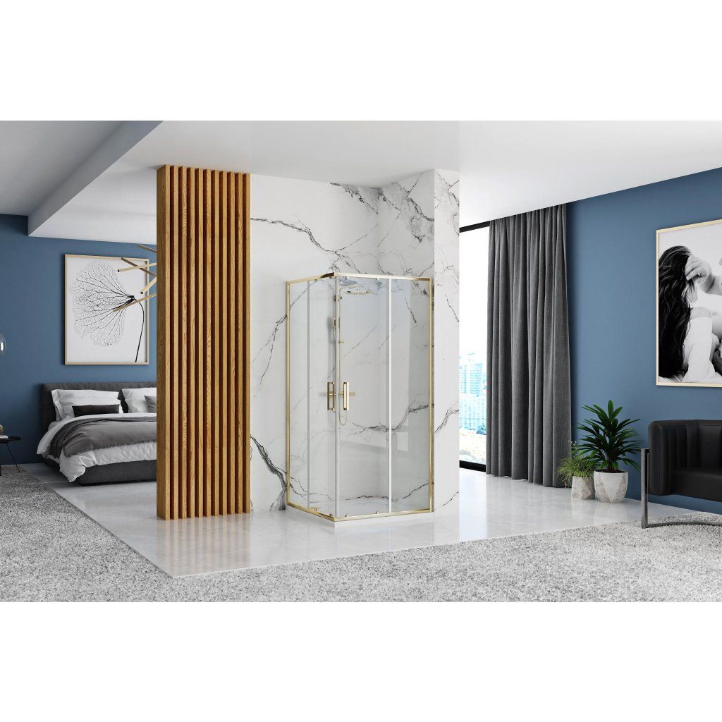 Rea Punto, sprchový kút s posuvnými dverami 80(dvere) x 100(dvere) x 190 cm, 5mm číre sklo, zlatý lesklý profil, REA-K6442