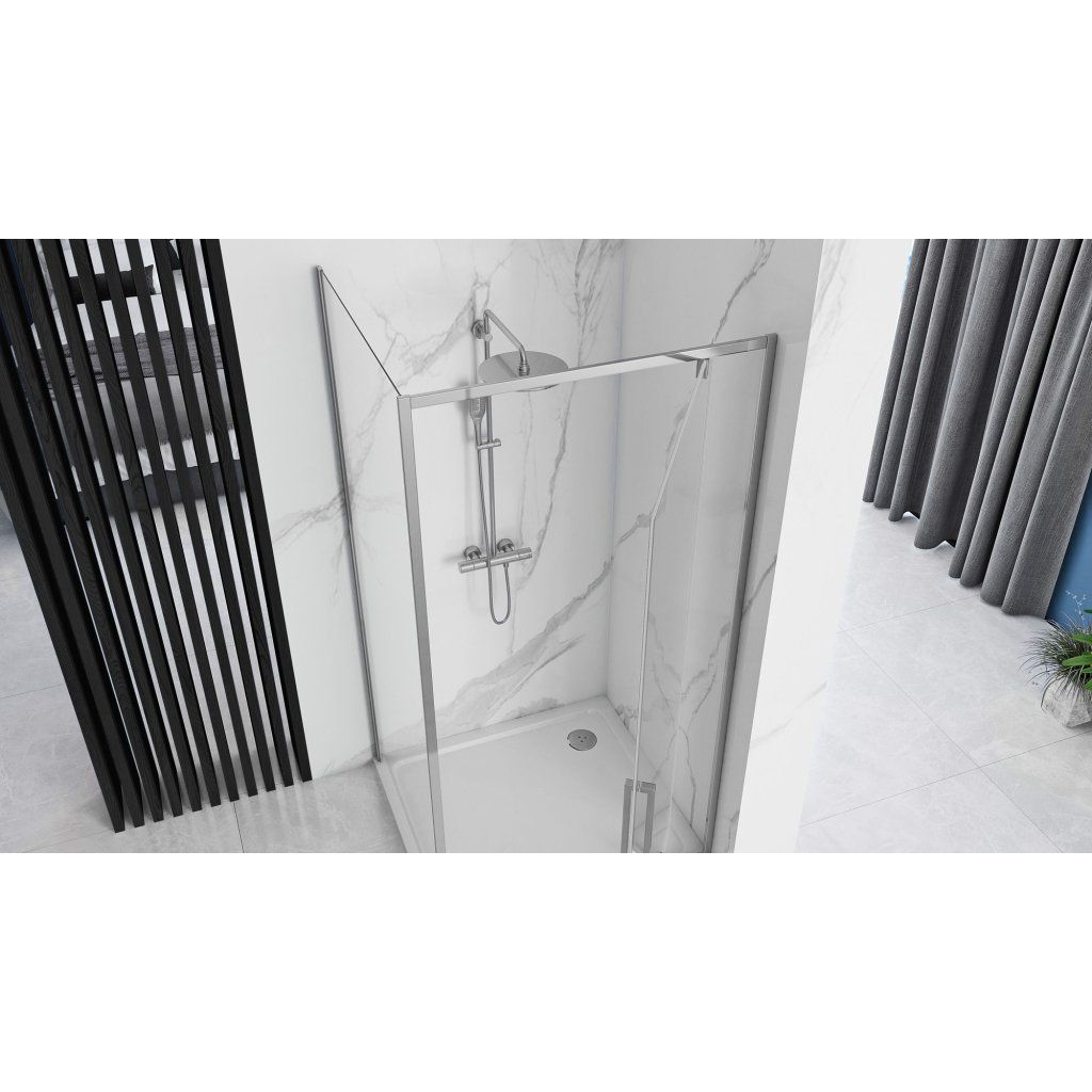 Rea Rapid Swing, rohový sprchovací kút 90(dvere) x 80(stena) x 195 cm, 6mm číre sklo, chrómový profil, KPL-K1606