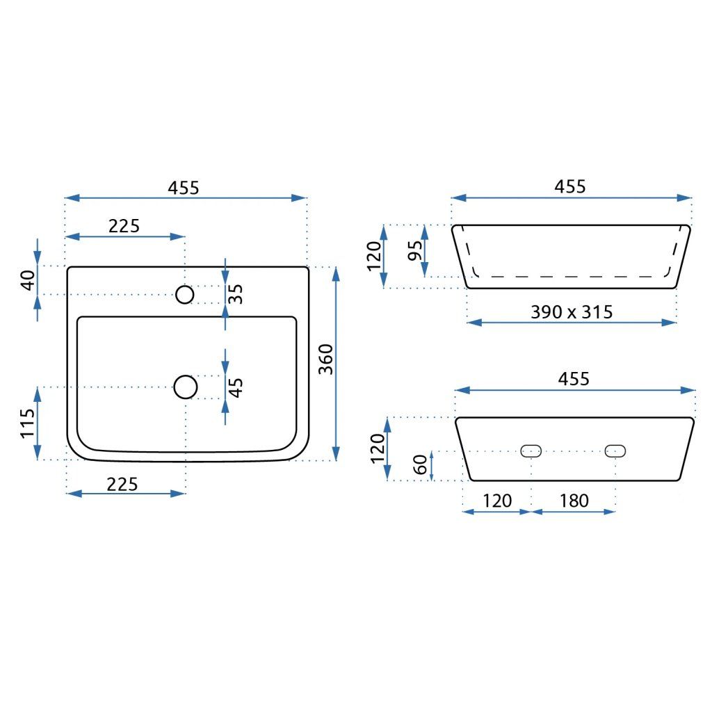 Rea Remi, umývadlo na dosku / závesné 45,5 x 36 x 12 cm, biela lesklá, REA-U6961
