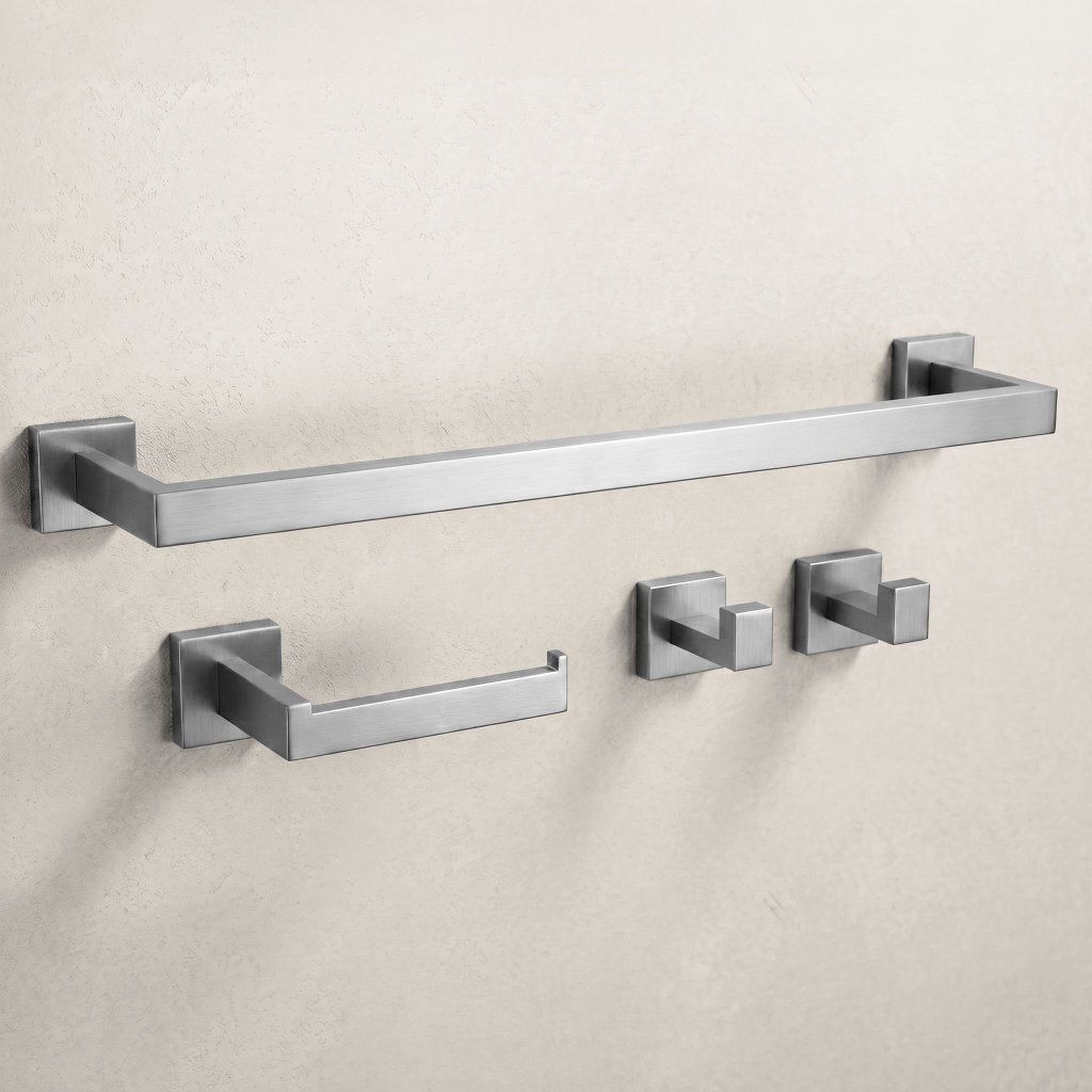 Súprava kúpeľňových doplnkov Rio je elegantné a funkčné riešenie, ktoré sa dokonale hodí do každej modernej kúpeľne. Súčasťou setu je držiak na uterák, držiak na toaletný papier a dva praktické háčiky, ktoré spolu vytvárajú štýlový komplet na každodenné používanie.