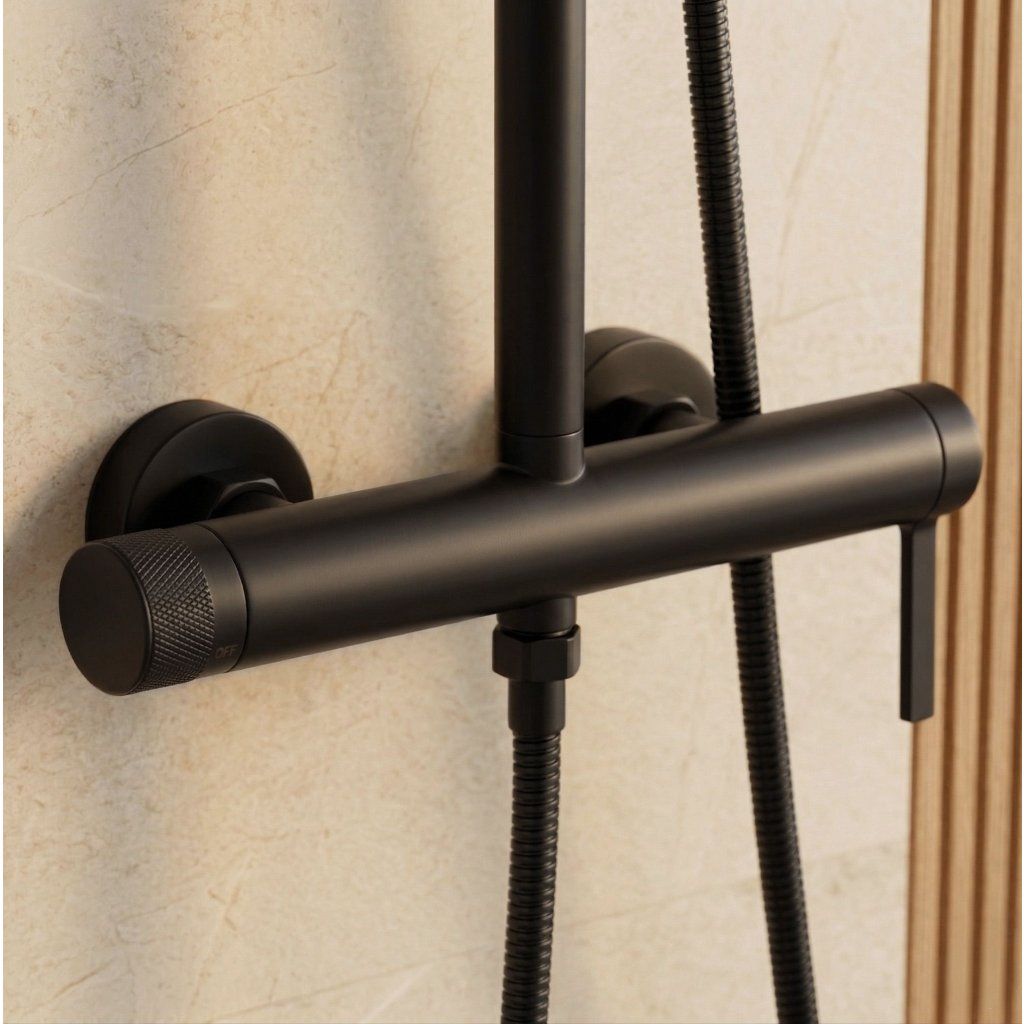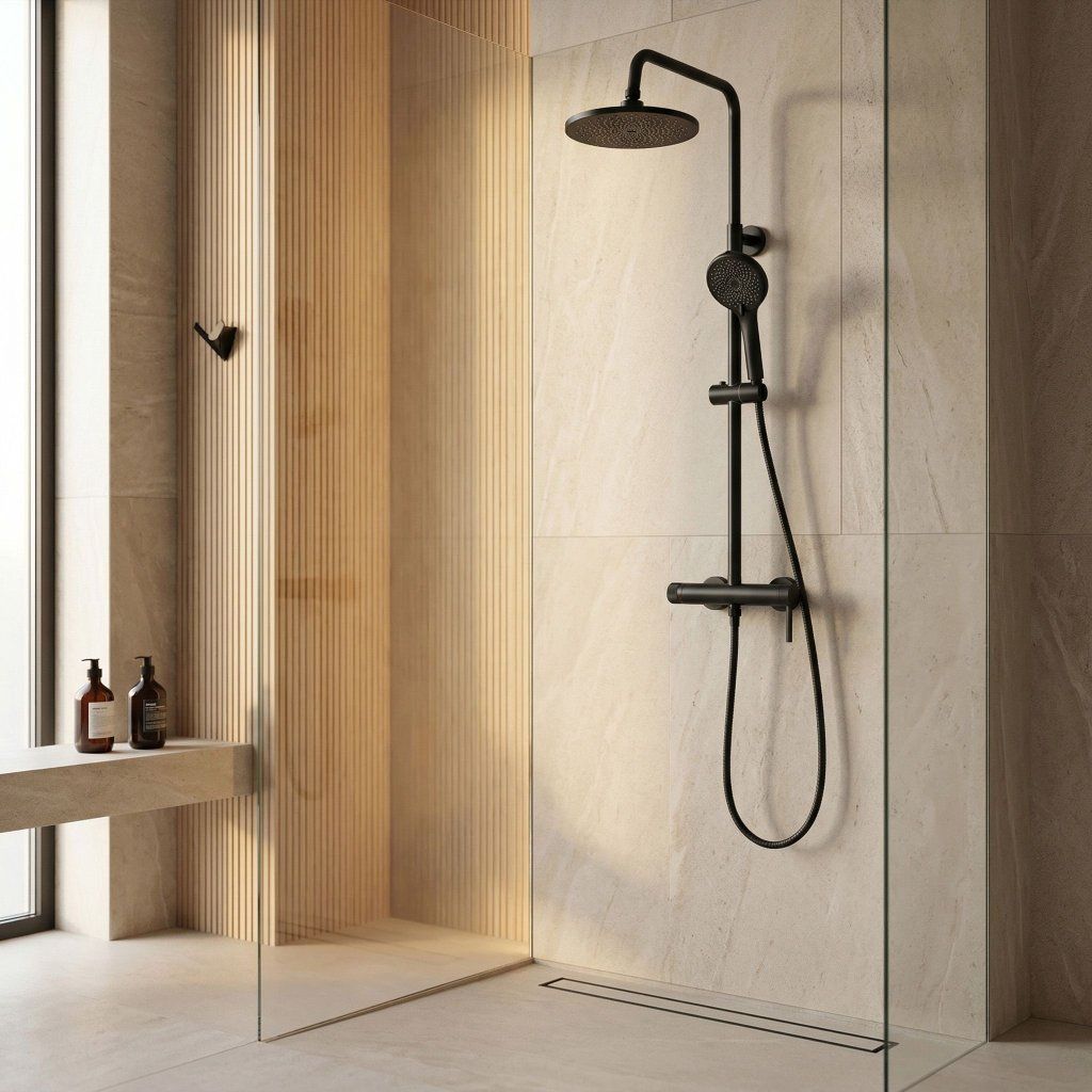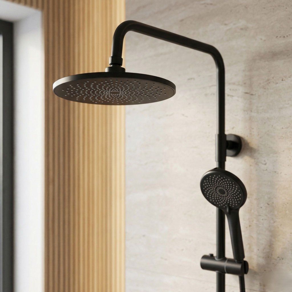 Sprchový stĺp zo série RIVO v elegantnom čiernom matnom prevedení je dokonalým vyjadrením moderného minimalizmu a funkčného dizajnu. Tento kompletný sprchový set je navrhnutý tak, aby sa stal dominantným prvkom každej súčasnej kúpeľne, ktorej dodá industriálny nádych a punc luxusu. Systém kombinuje rozmernú hlavovú sprchu pre relaxačný zážitok s praktickou ručnou sprchou na flexibilnej hadici. Povrchová úprava s využitím pokročilej technológie galvanického pokovovania zaručuje vysokú odolnosť voči korózii, mechanickému poškodeniu a uľahčuje udržiavanie bezchybného vzhľadu bez viditeľných odtlačkov prstov.