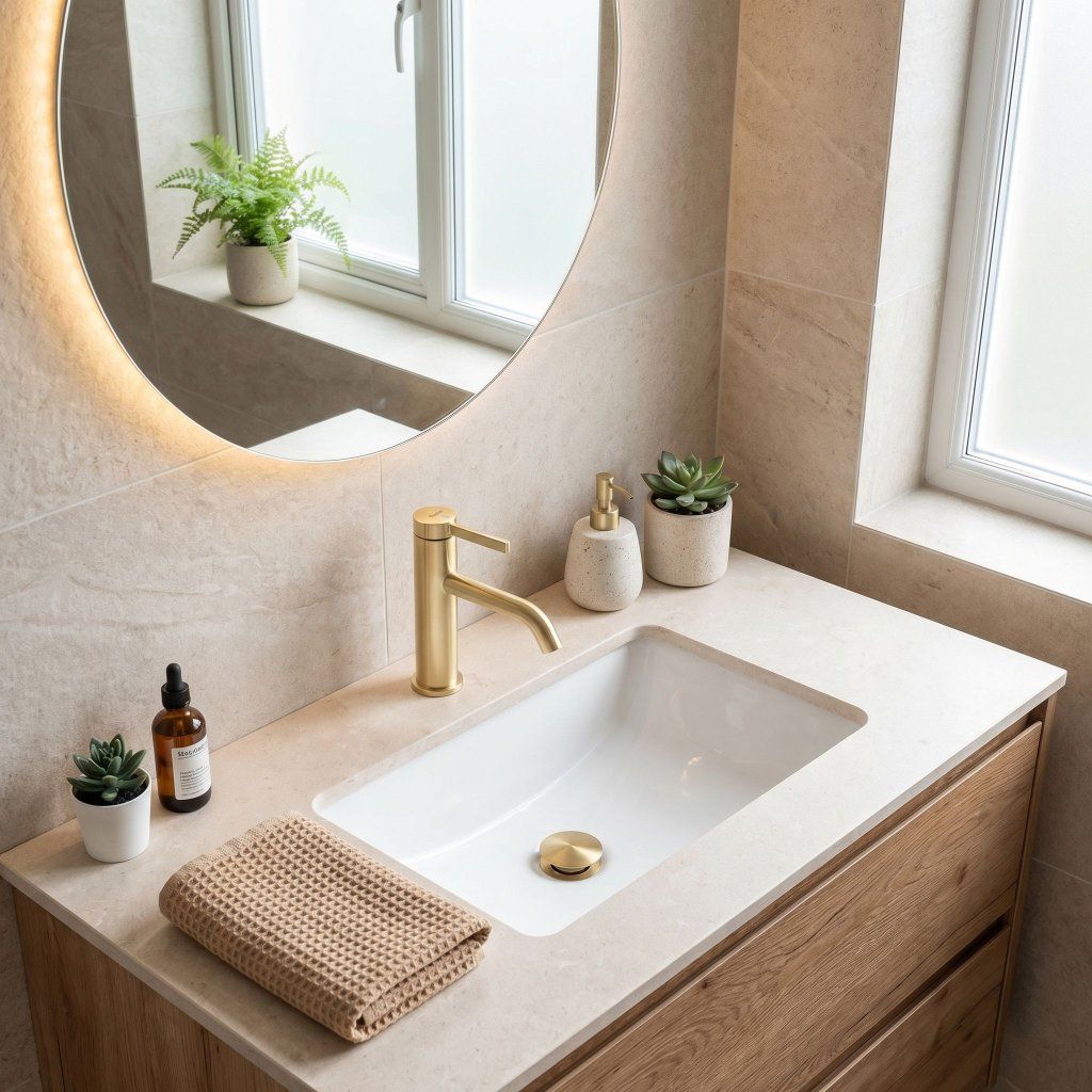 Povrchová úprava Zlatá matná (Brush Gold) dodáva batérii teplý, luxusný vzhľad s jemným kefovaným efektom. Mosadzné telo zaručuje dlhú životnosť a odolnosť voči každodennému používaniu v kúpeľňovom prostredí.