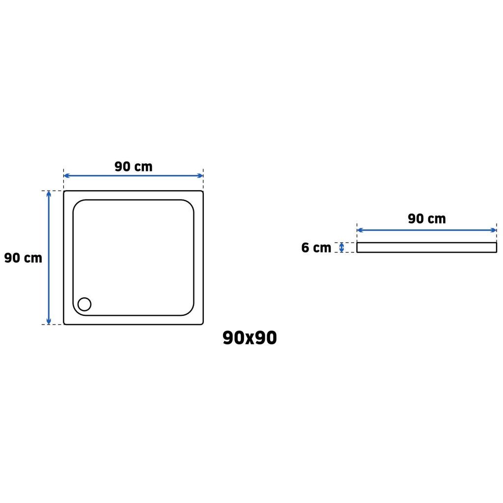 Rea Savoy, akrylátová štvorcová sprchová vanička 90x90x6 cm + sifón, biela, REA-K1907