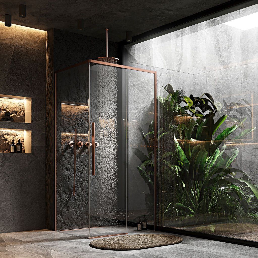 Rea Solar, sprchovací kút s posuvnými dverami 120(dvere) x 90(stena) x 195 cm, 6mm číre sklo, medený matný profil, REA-K9514