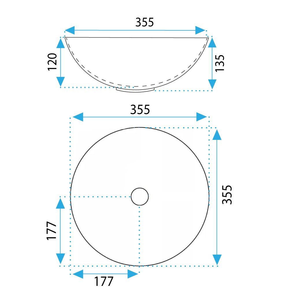 - Priemer umývadla: 355 mm