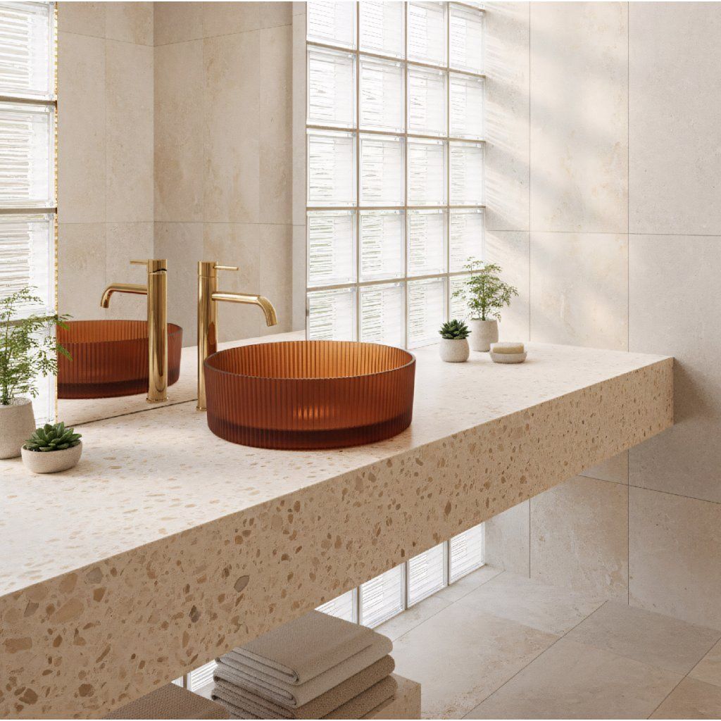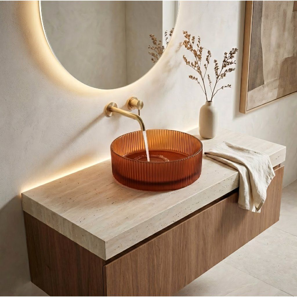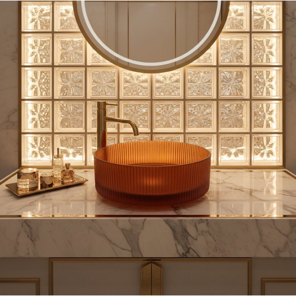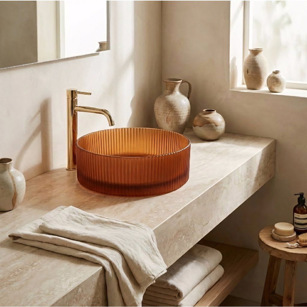 Rea Suri, sklenené umývadlo na dosku 360x360x115 mm, amber-hnedá, REA-U3613