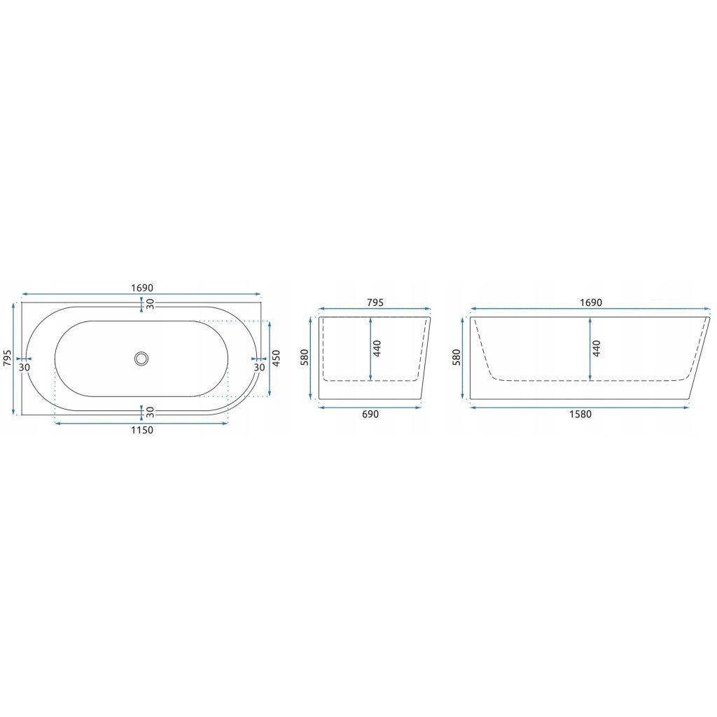 Výška lemu 580 mm umožňuje vstup pozdĺž celej dlhej 1690 mm strany — pri rohové vani bez steny na jednej strane je vstup a výstup prirodzený a ergonomický aj pre zákazníkov s obmedzenou pohyblivosťou.