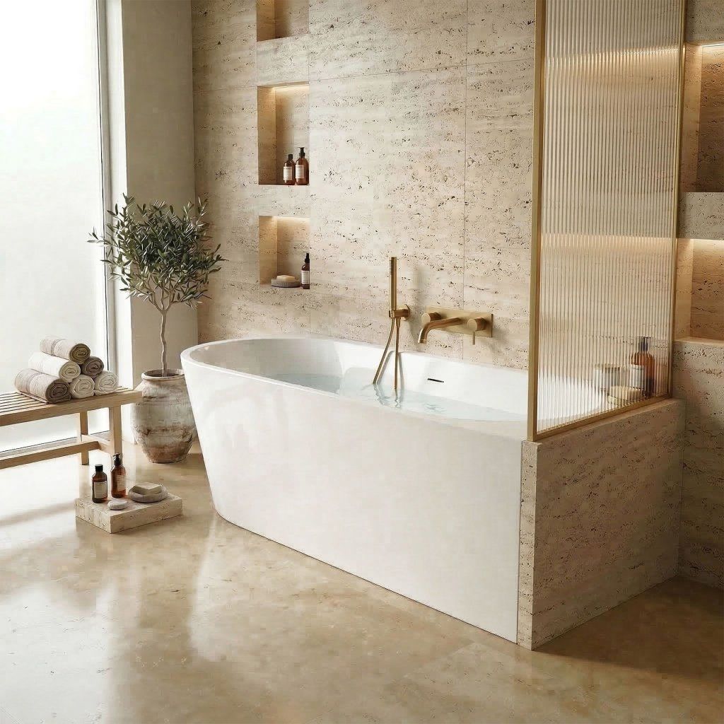 Rea Sydney Bellanto, voľne stojaca akrylová rohová vaňa, pravá, biela, 160x80cm, + zlatá matná odtoková krytka, KPL-W7253