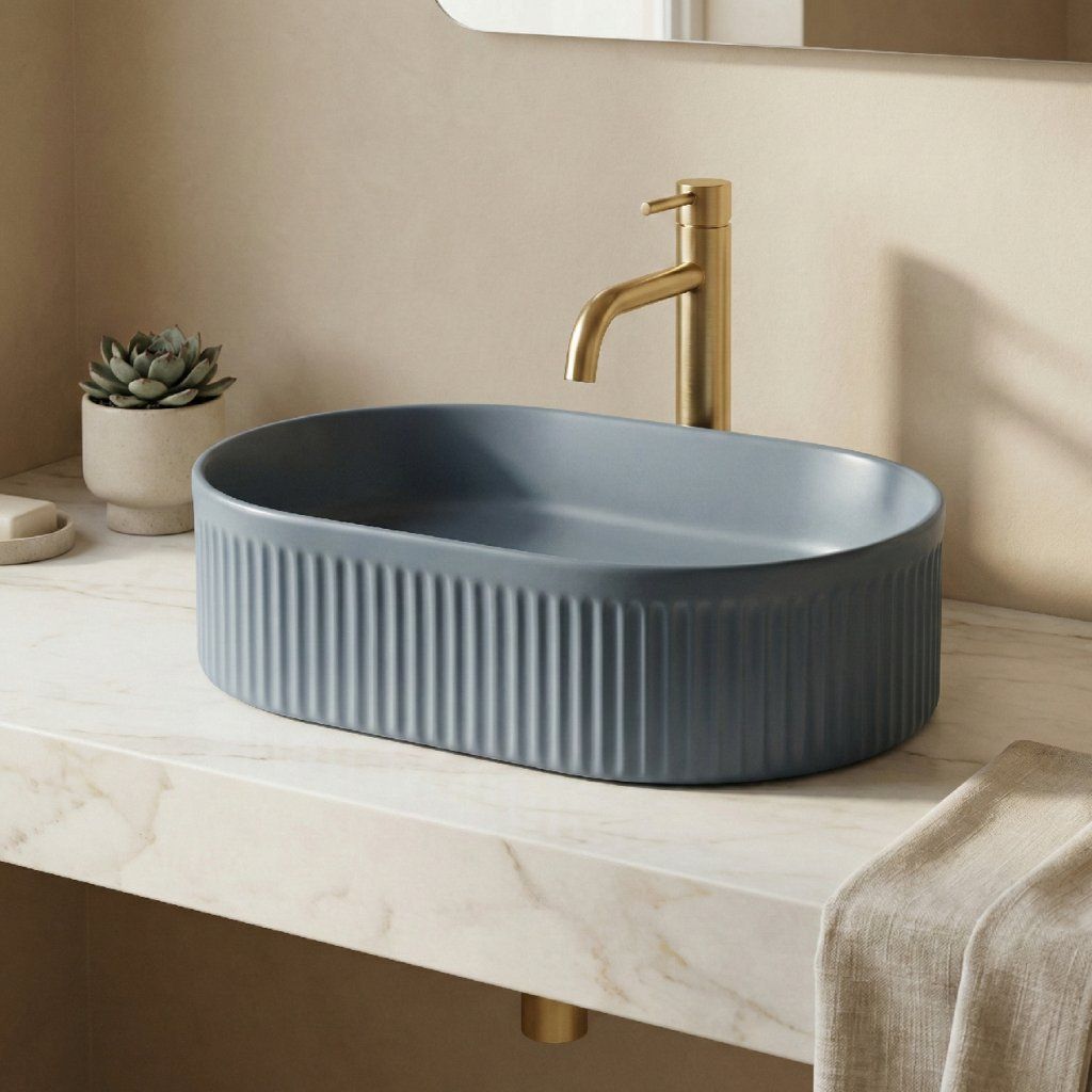 Rea Vanda Blueberry je dizajnové umývadlo na dosku, ktoré vnesie do kúpeľne originálny farebný akcent a moderný charakter. Matná modrá farba v odtieni Blueberry spolu s jemne zaobleným tvarom vytvára elegantný a zároveň výrazný prvok umývacej zóny. Tento model je ideálnou voľbou pre kúpeľne, kde sa spája moderný dizajn s funkčnosťou.