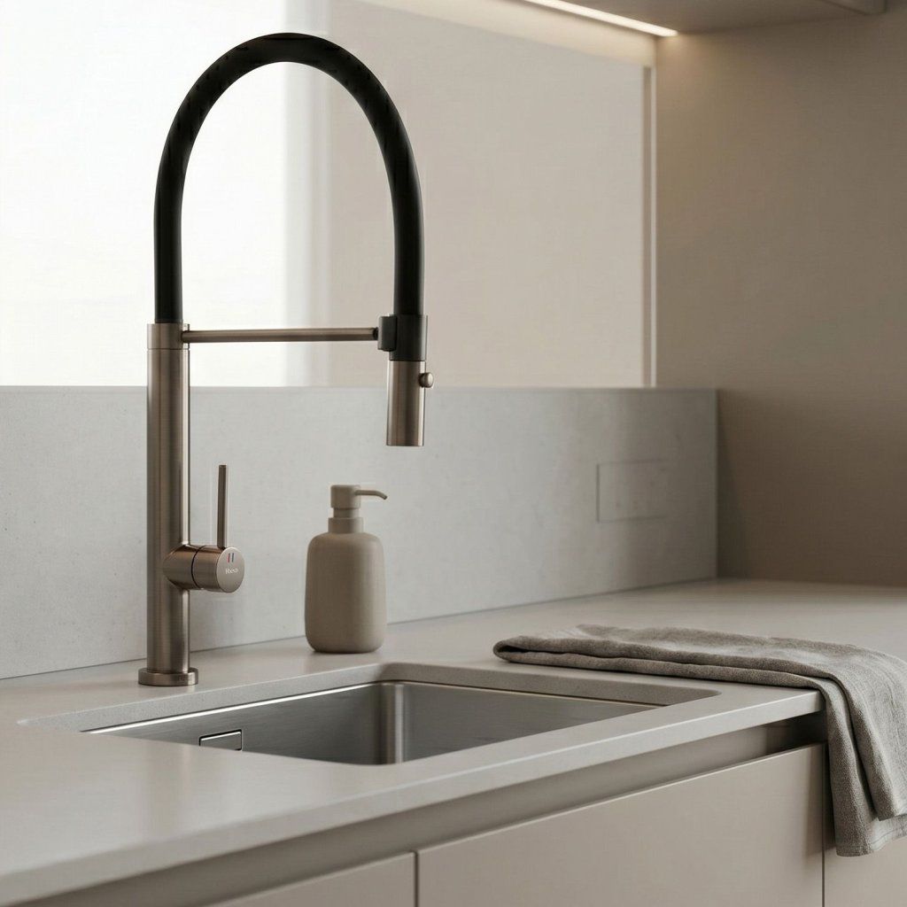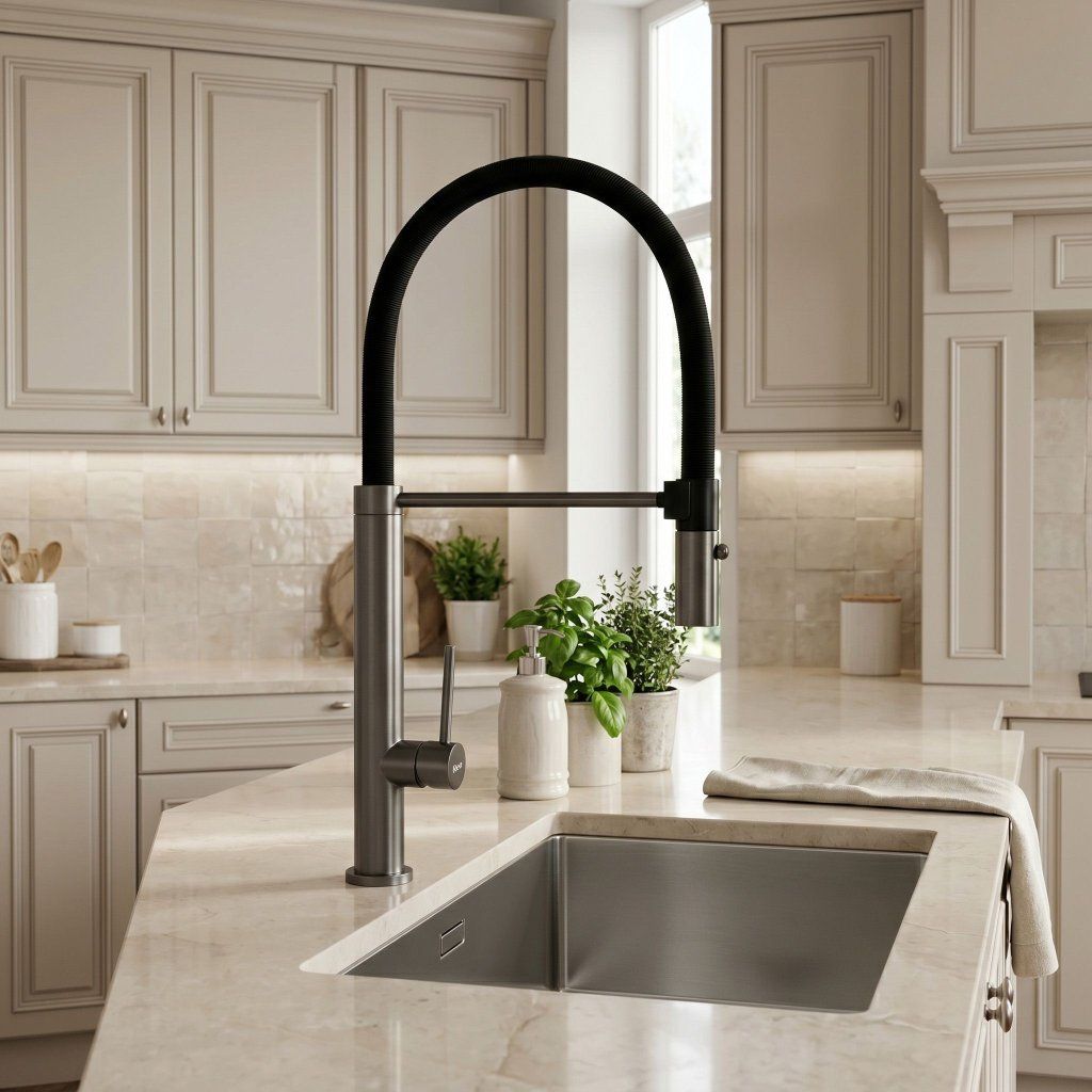 Kuchynská batéria REA Viera v grafitovom prevedení ponúka nekompromisné, moderné riešenie pre každú kuchyňu. Hlboký, tmavosivý odtieň s metalickým leskom vytvára prestížny charakter a skvele sa hodí do projektov typu modern loft aj do minimalistických, luxusných priestorov.