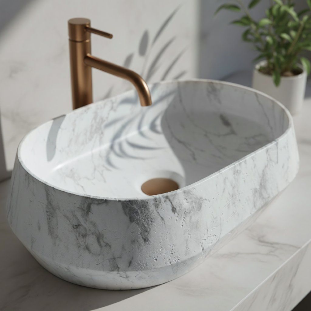 Umývadlo na dosku Rea Zoe Dune je výrazný dizajnový prvok, ktorý zaujme svojou originálnou asymetrickou formou. Organický tvar inšpirovaný prírodou dodáva kúpeľni moderný a sochársky charakter. Jeden okraj misy je vyšší ako druhý, čo vytvára dynamický vizuálny efekt a zároveň poskytuje pohodlnú oporu pri každodennom používaní. Povrch v prevedení imitácie prírodného kameňa v matnom šedom odtieni pôsobí elegantne a prirodzene. Umývadlo je vyrobené z kvalitného kompozitného materiálu Artificial Stone, ktorý je známy vysokou pevnosťou, odolnosťou voči mechanickému poškodeniu a príjemným povrchom na dotyk.