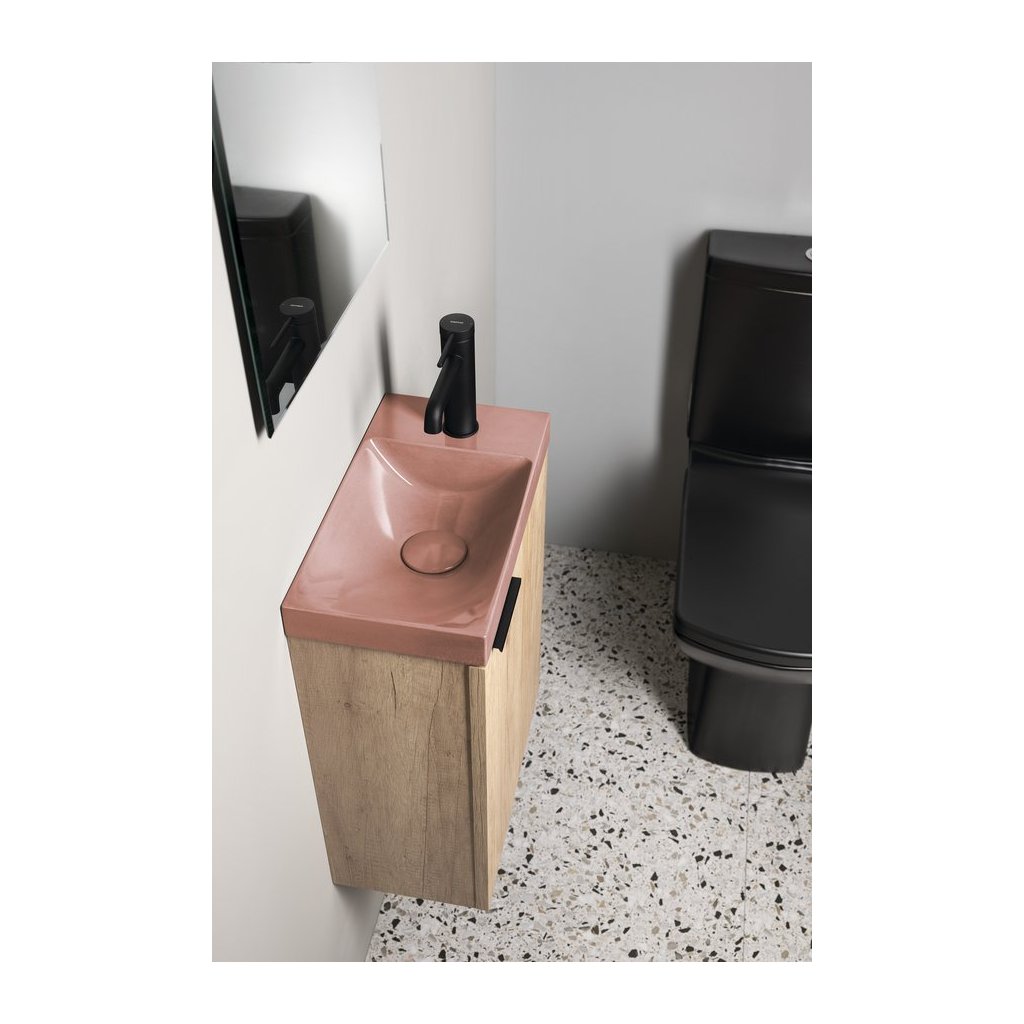 Štýlové betónové umývadlo SAPHO AGOS v elegantnom ružovom lesklom prevedení prináša do kúpeľne jemný dizajnový akcent a moderný vzhľad. Vďaka rozmerom 40 × 22 cm je ideálne do menších kúpeľní, WC či hosťovských priestorov. Možnosť orientácie ľavé/pravé umožňuje prispôsobiť montáž podľa dispozície nábytku a priestoru.
