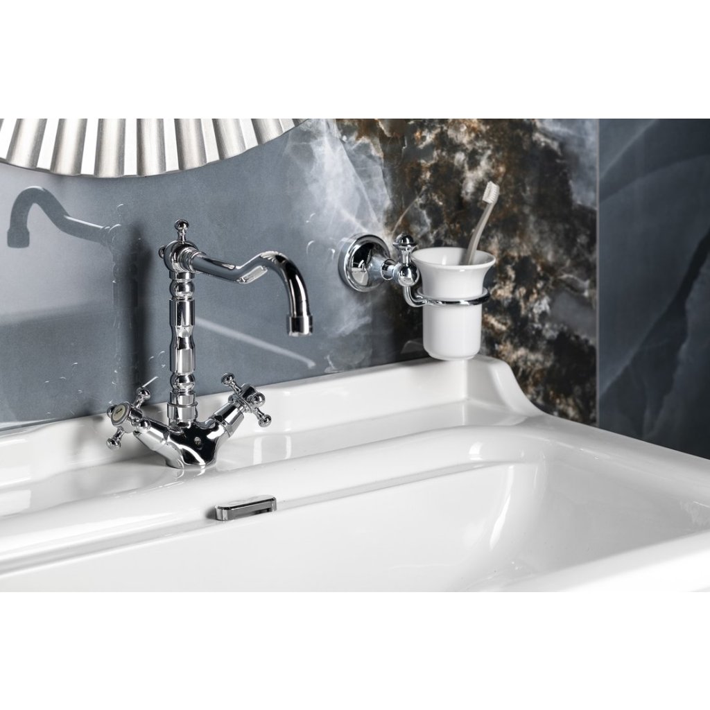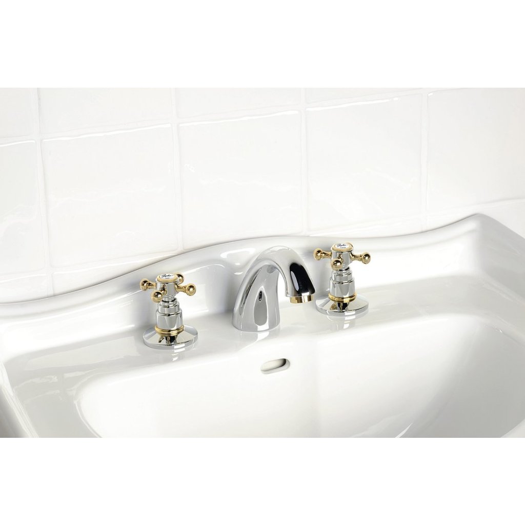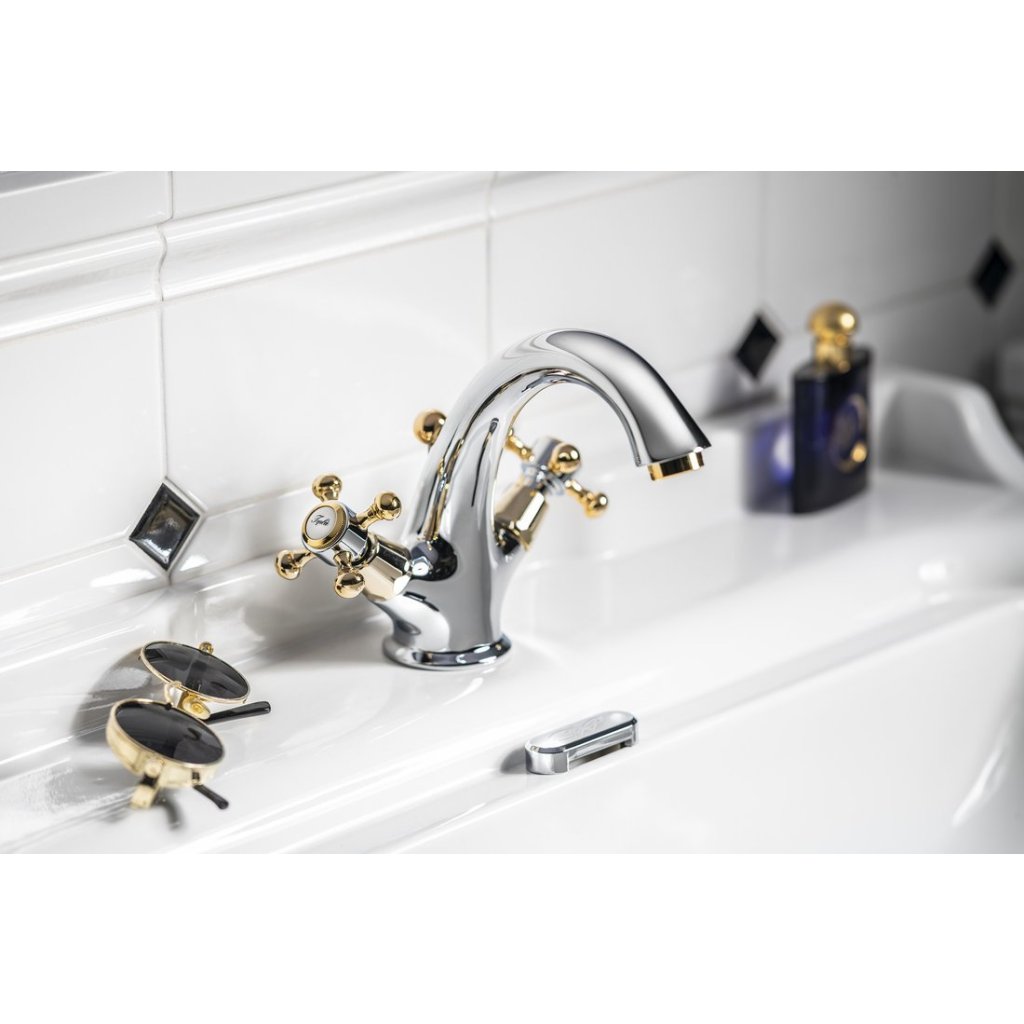 Batéria je vyrobená z kvalitnej mosadze s povrchovou úpravou chróm doplnenou o jemné zlaté akcenty, čo jej dodáva luxusný a ušľachtilý vzhľad. Ovládanie je plynulé, ergonomické a spoľahlivé, pričom spracovanie zaručuje dlhú životnosť a vysokú odolnosť voči každodennému používaniu.