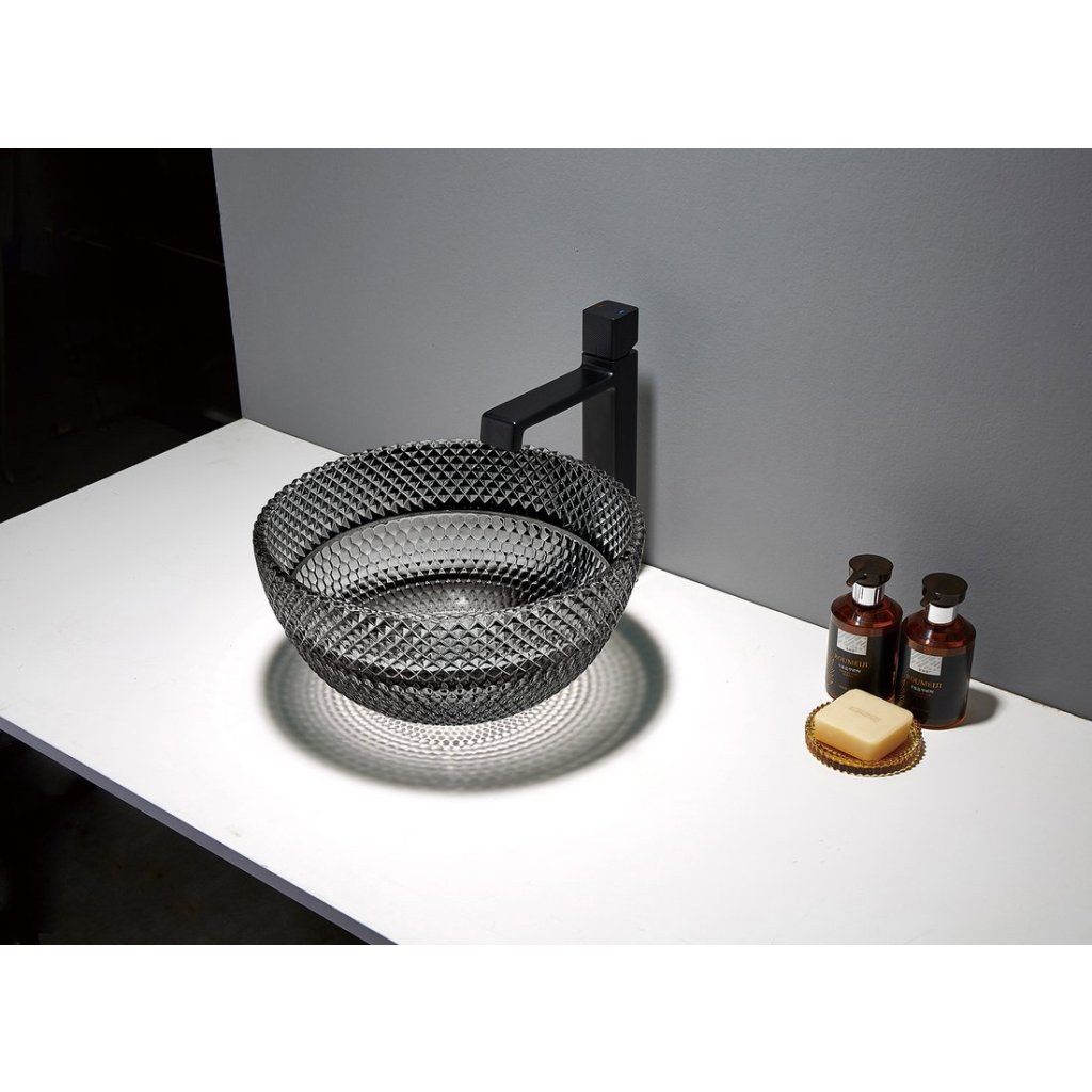 Sapho, BEAUTY gravírované sklenené umývadlo na dosku Ø 39,5cm, čierna, TY310