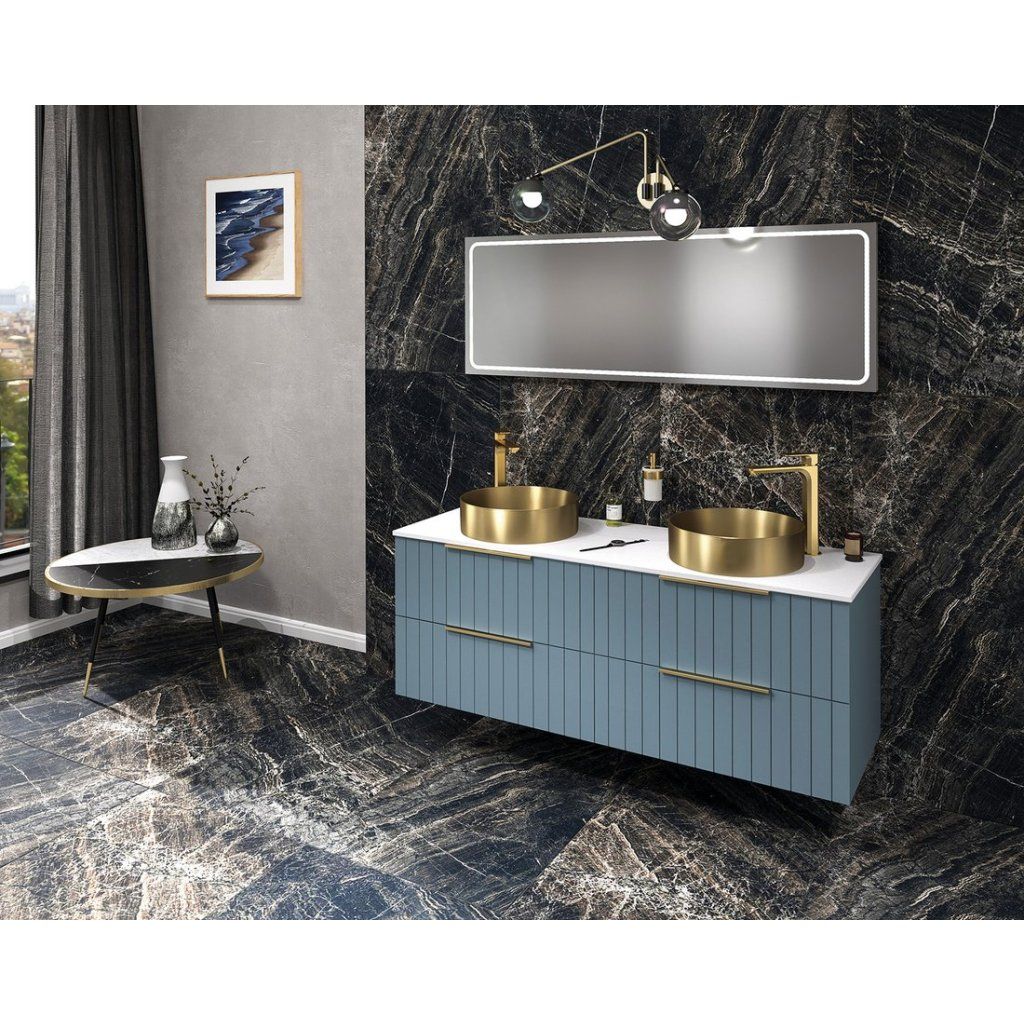 Séria CIRASA STRIP prináša do kúpeľňového dizajnu sofistikovanú textúru a moderný vizuálny rytmus. Táto umývadlová skrinka vyniká čelami zásuviek s jemným lamelovým frézovaním, ktoré vytvára jedinečnú hru svetla a tieňa. Dekor dub Alabama dodáva nábytku prírodné teplo, zatiaľ čo elegantné zvislé línie podčiarkujú jeho luxusný a dynamický vzhľad.