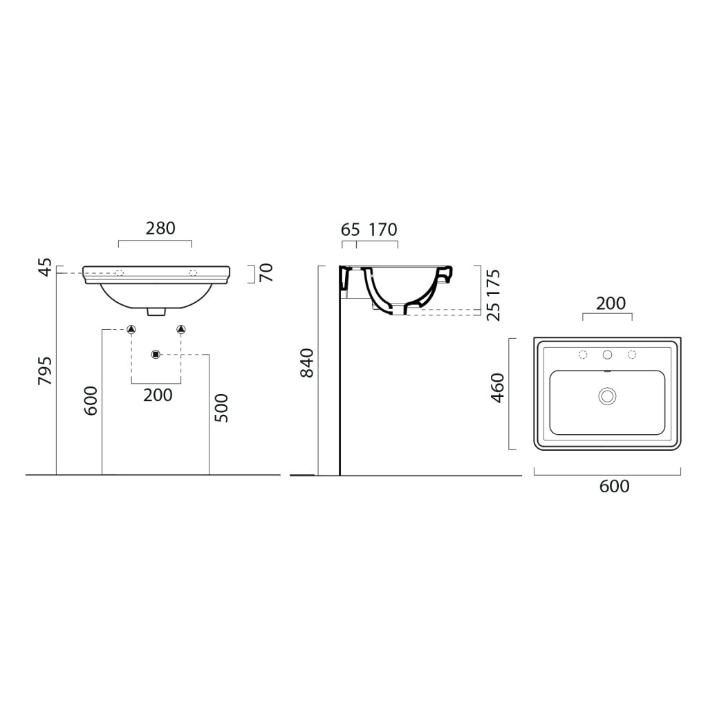 - na objednávku je možné dodať umývadlo bez otvoru pre batériu alebo s tromi otvormi pre trojprvkové batériu