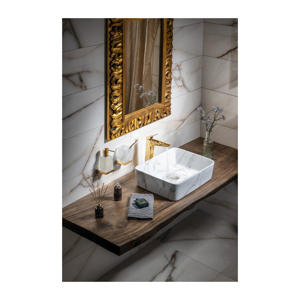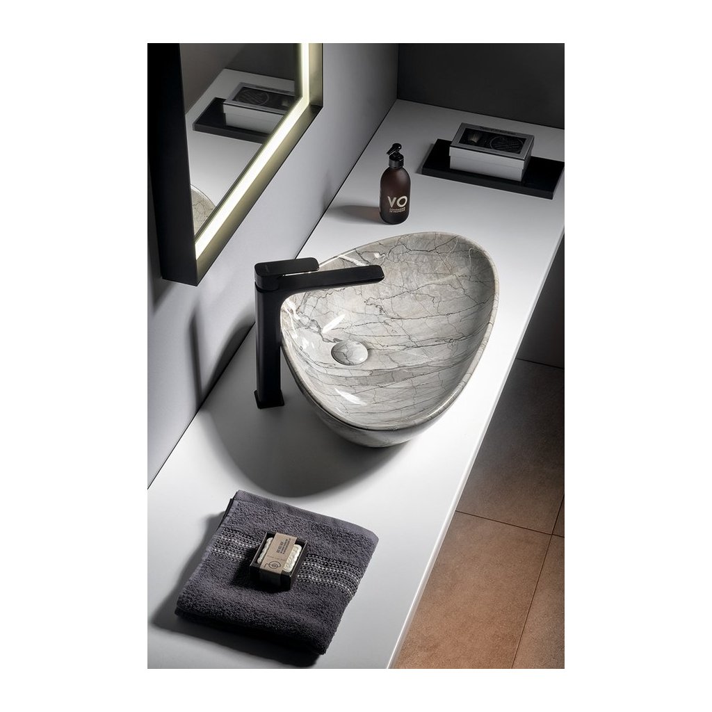 Séria keramických umývadiel DALMA zaujme kamenným efektom. Umývadlá sú glazovaná s vypálenými obtlačky v dizajne kameňa, čím je zaručená stálosť a trvanlivosť dekoru. Vyberať môžete nielen z troch dekorov v odtieňoch mramoru, ale aj z piatich tvarov. Umývadlá sú určené na postavenie na dosku, ku všetkým možno dokúpiť uzatvárateľnú výpust vo farbe umývadla.