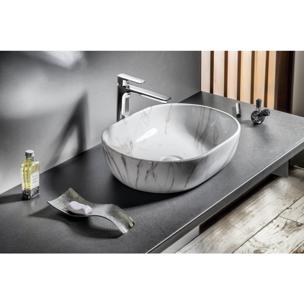 Sapho DALMA, keramické umývadlo na dosku, 59 × 42 cm, imitácia kameňa, MM427