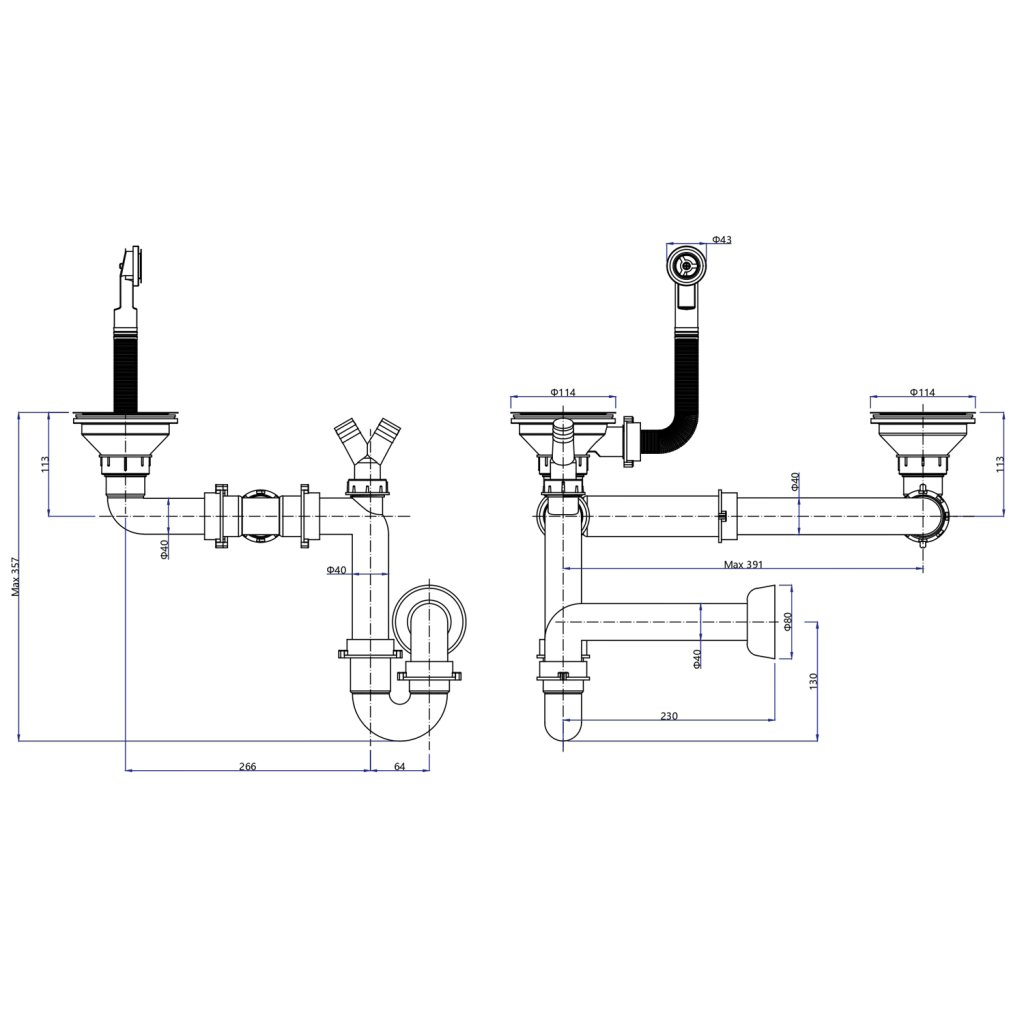 Balenie obsahuje | Sifón s odbočkou na práčku/umývačku, Šablóna pre výrez | |