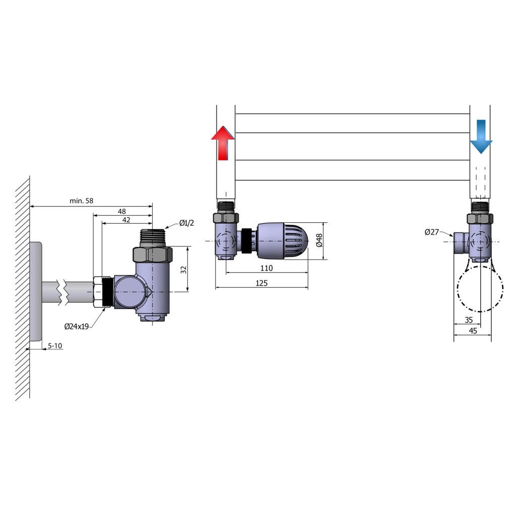 Sapho, ECO COMBI pripojovacia sada ventilov termostatická, l´avé, nikel, CP993S