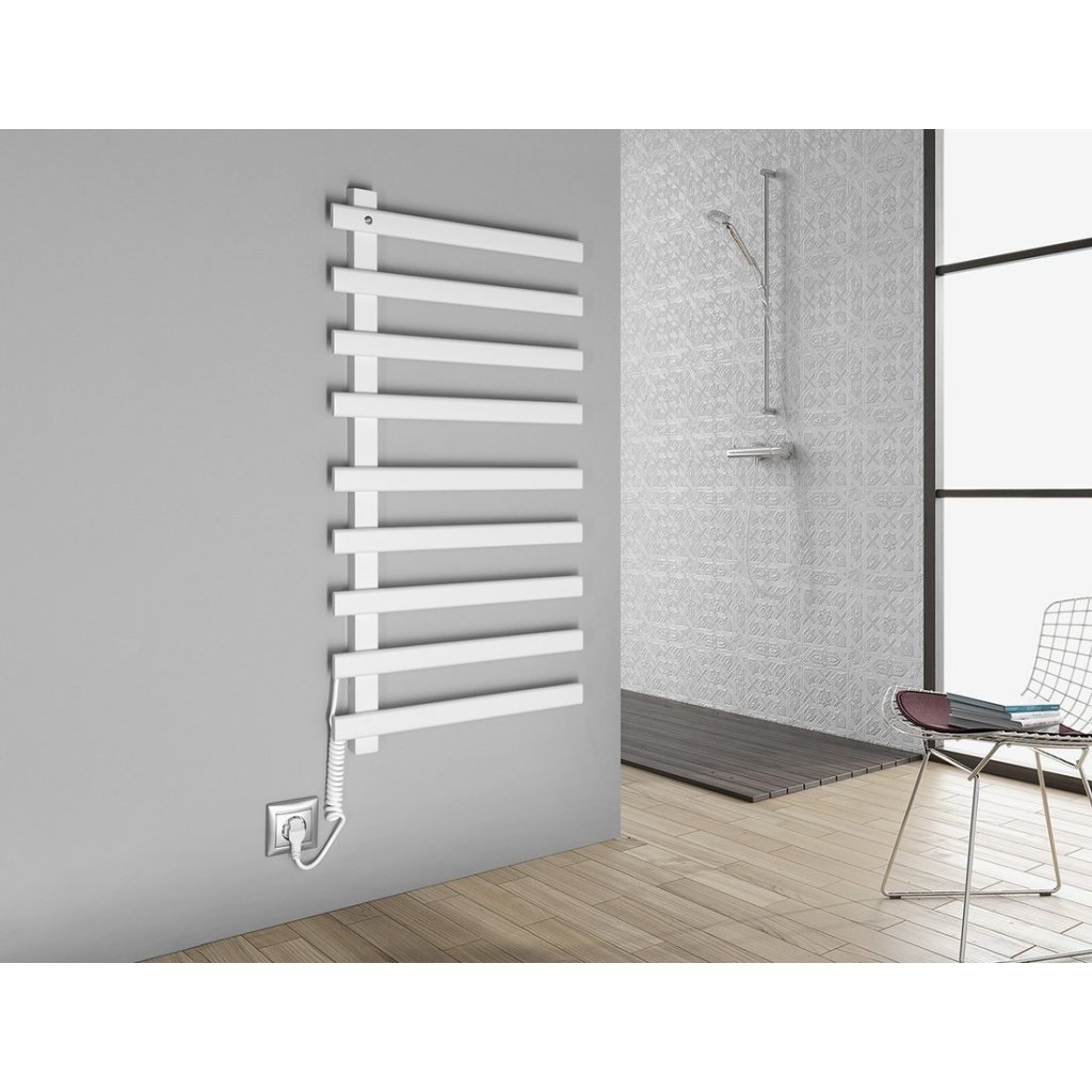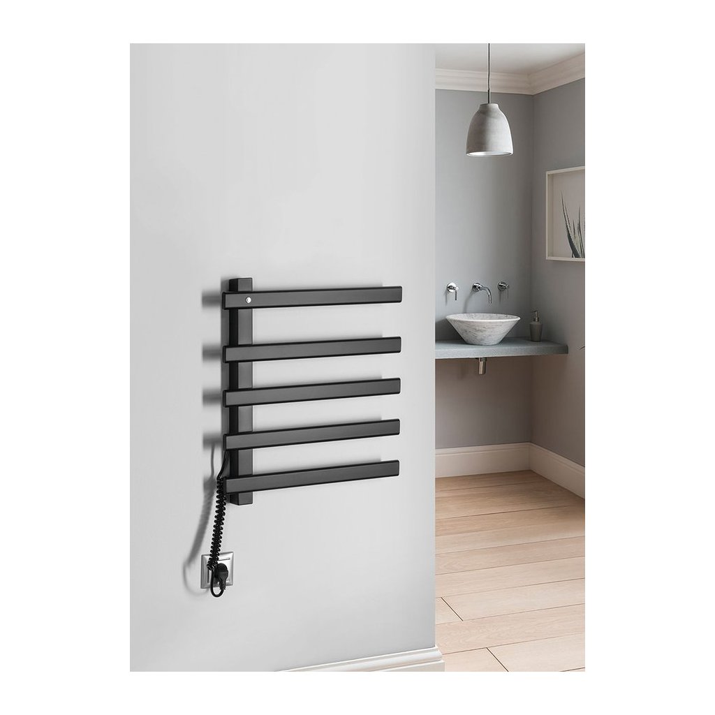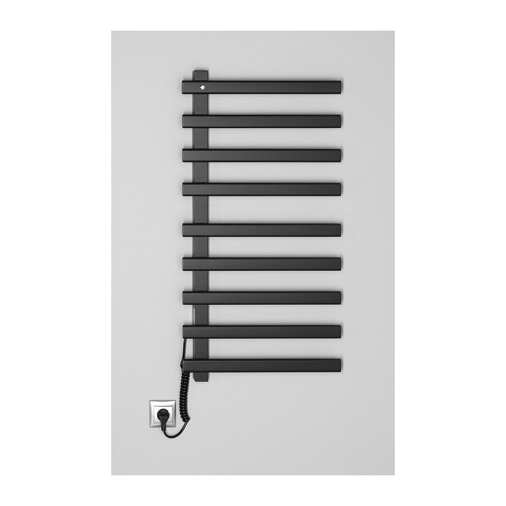 Elektrické vykurovacie telesá z lakovanej nerez ocele ELCOR sú určené na nahrievanie a sušenie uterákov, čo oceníte najmä v zimnom období. Vnútro vykurovacieho telesa je vyrobené z uhlíkového vlákna (bez použitia kvapalnej plniacej zmesi), čo zaisťuje skvelú tepelnú vodivosť. Podsvietený vypínač je integrovaný v hornej ľavej časti. Teleso je možné zapojiť priamo do elektrickej zásuvky vďaka krútenému káblu o dĺžke 80 cm, ktorý je umiestnený vľavo dole a nemožno ho pozične meniť.