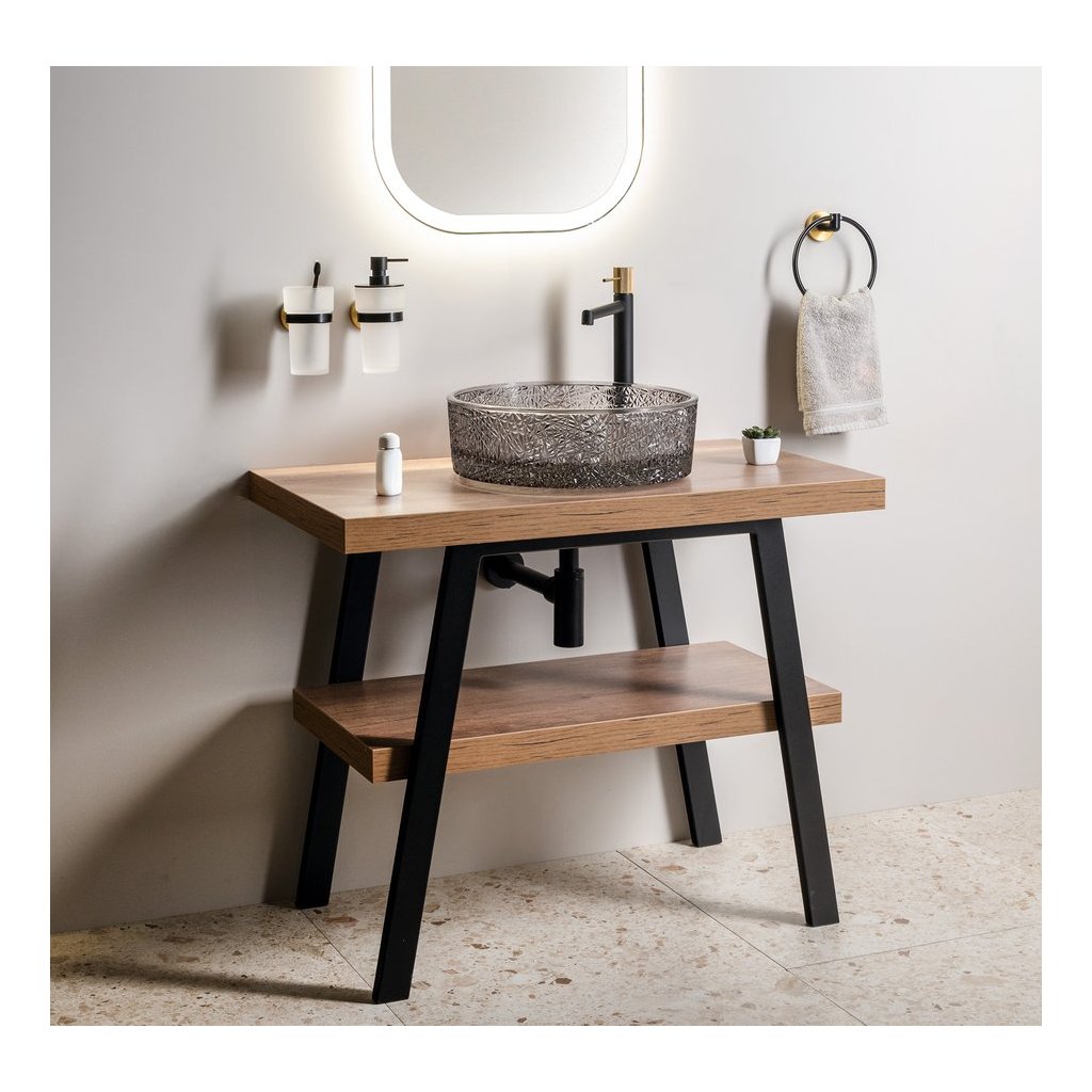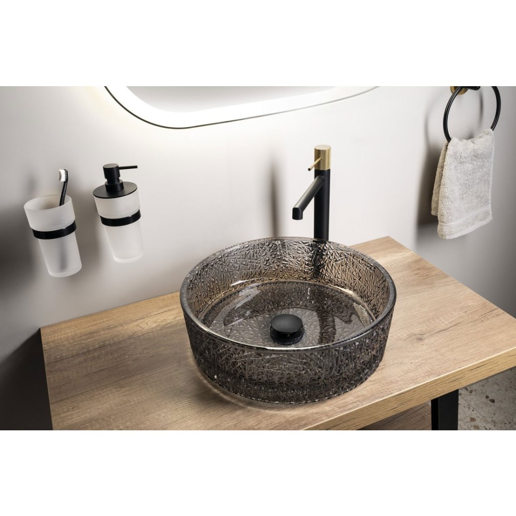 Sapho, ERSEL gravírované sklenené umývadlo na dosku priemer 39,5cm, čierna, TY323B