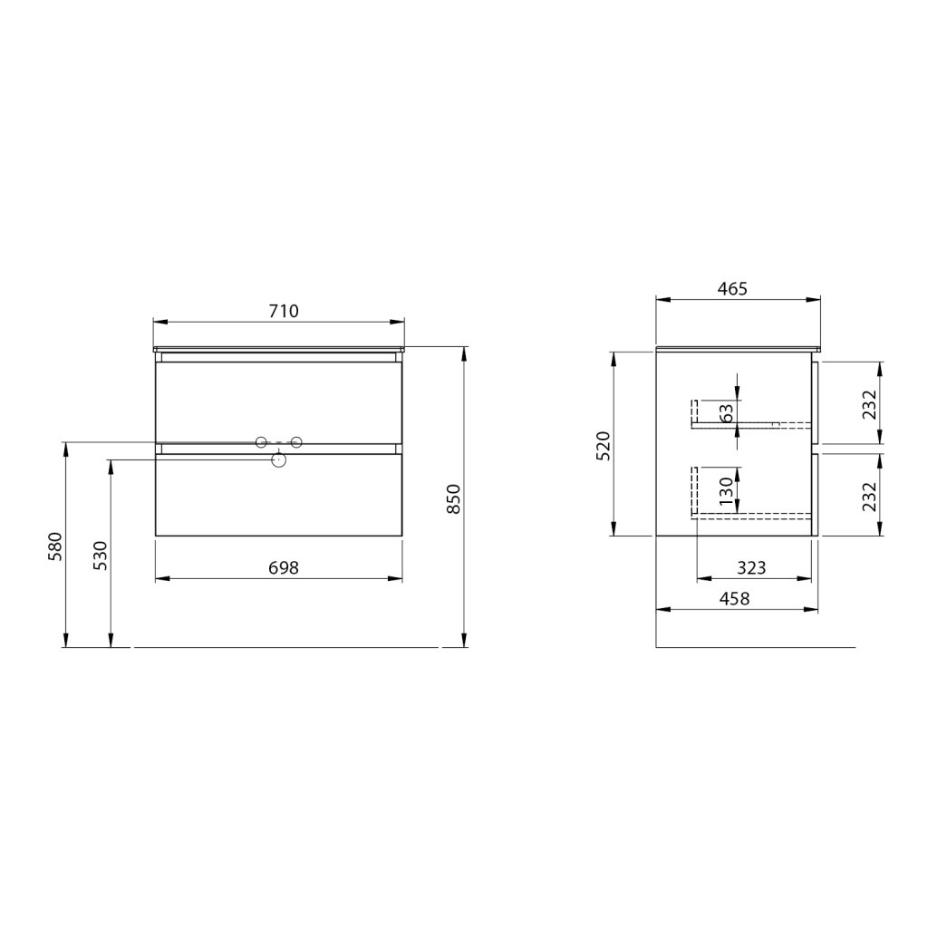 Sapho, EZARA umývadlová skrinka 69,8x52x46cm, dub cuneo, EZ701-2525