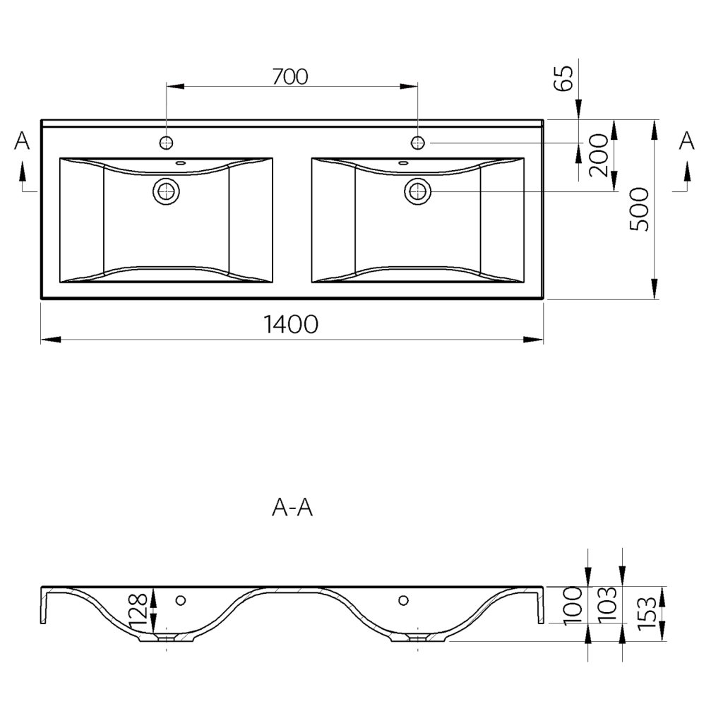 Sapho FLAVIA, dvojumývadlo 140×50 cm, liaty mramor, biela, 68141