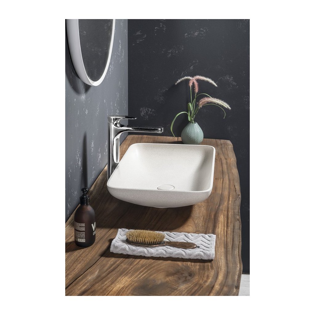 Sapho, INFRANE betónové umývadlo na dosku vrátane výpuste, 57x37cm, biely pieskovec, AR460