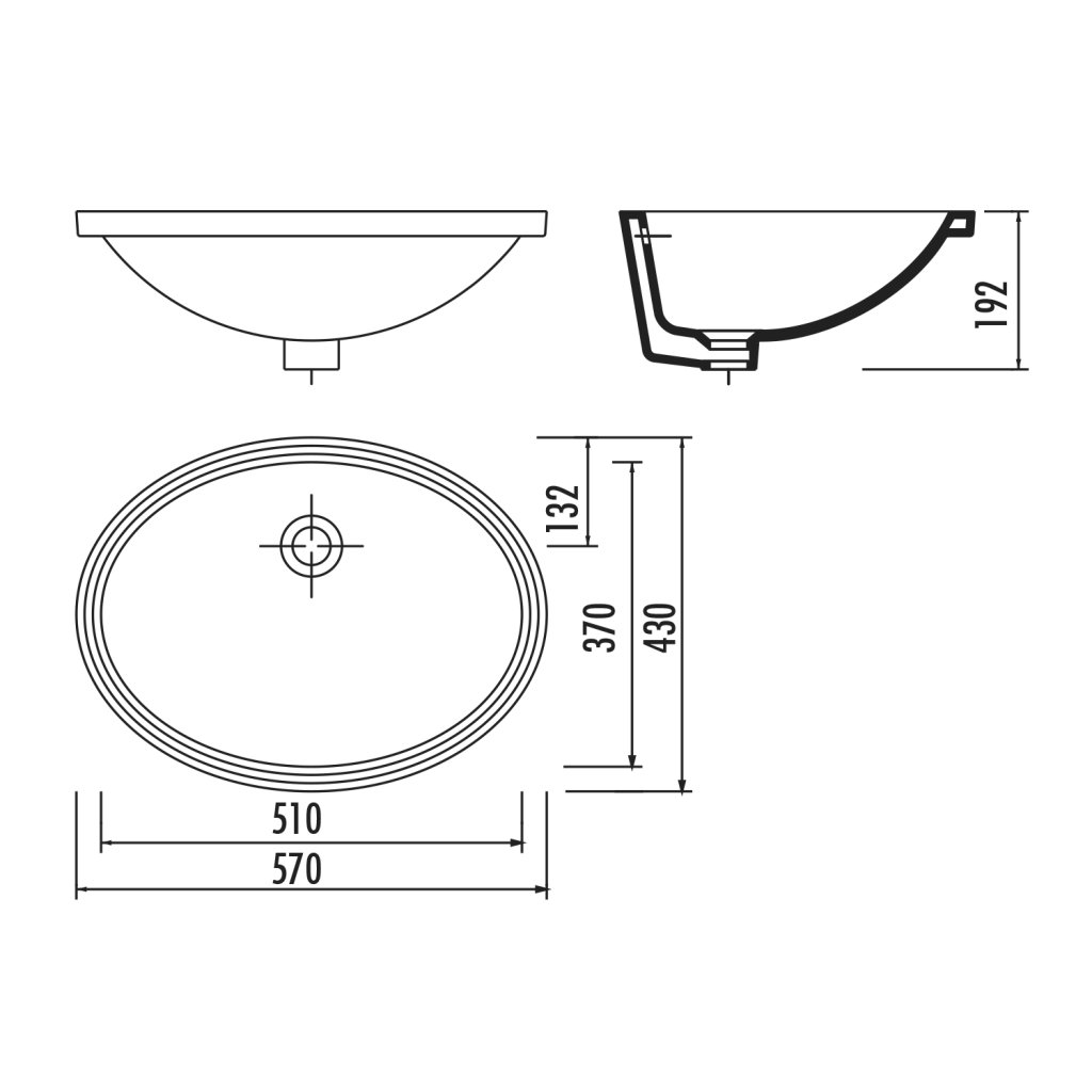 Sapho, Keramické umývadlo 57x43cm, pod dosku, TP216