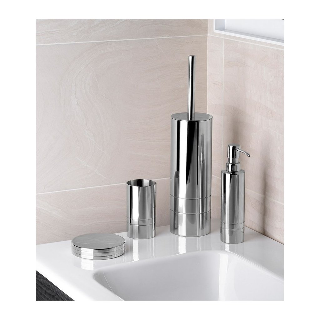 Rad kúpeľňových doplnkov na postavenie z lesklej nerezovej ocele v decentnom dizajne.