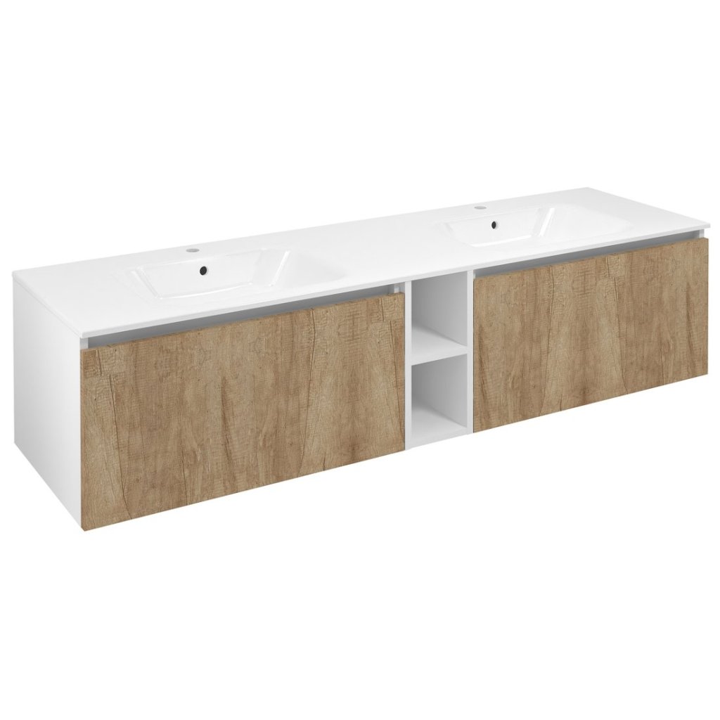 SAPHO LOREA, skrinka s umývadlom 160 × 46 × 51,5 cm, dub Alabama/biela matná, LE070-2231-08