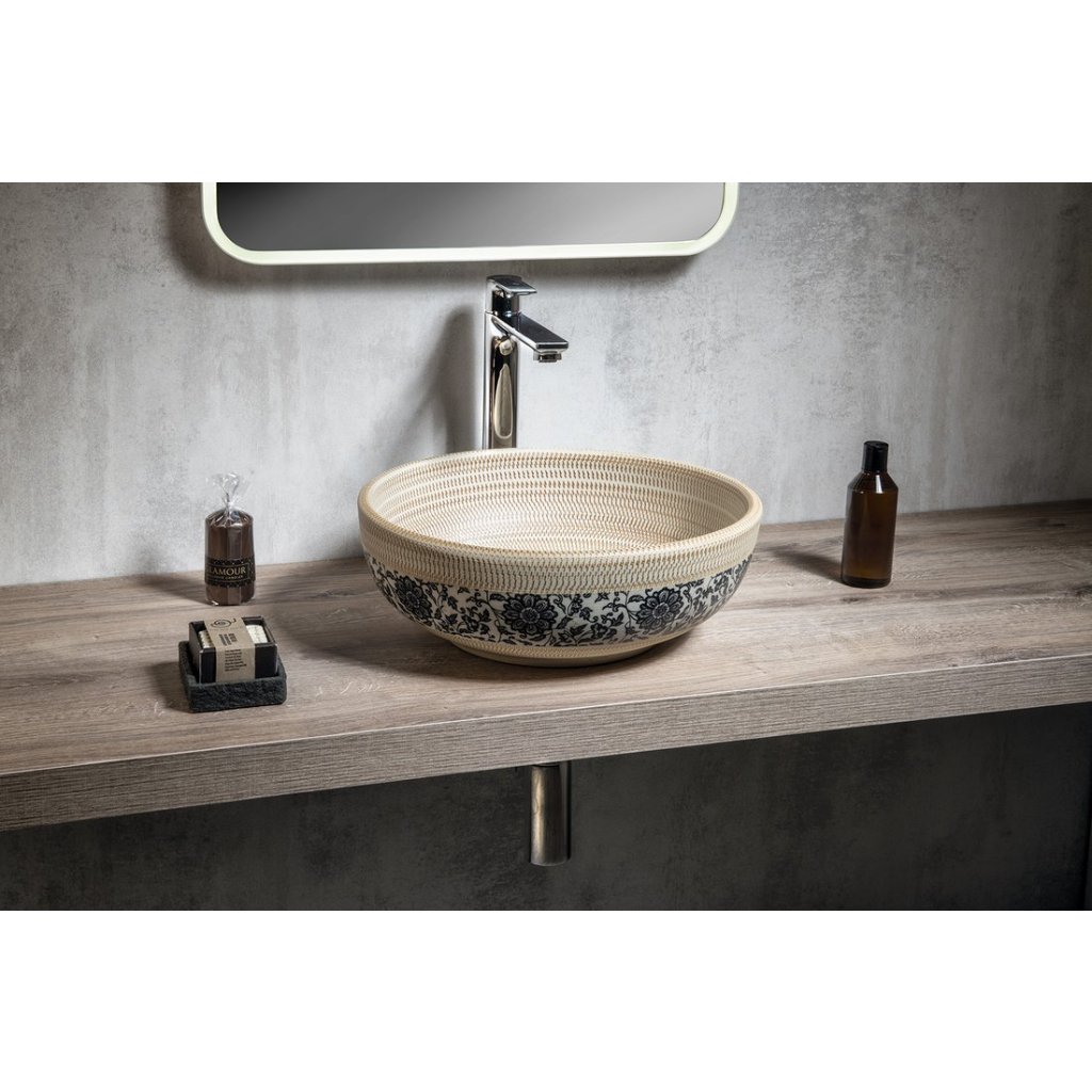 Sapho, PRIORI keramické umývadlo, priemer 41 cm, 15 cm, farba šedá so vzorom, PI024