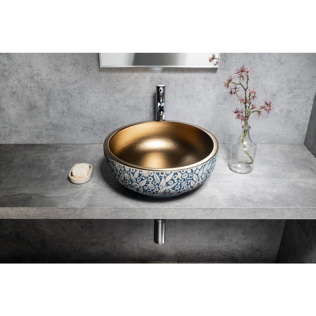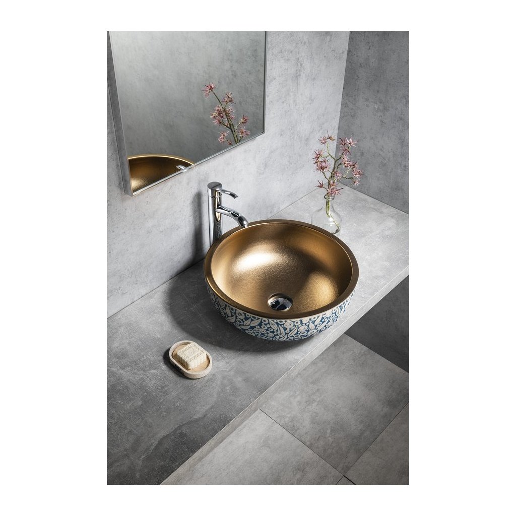 Sapho, PRIORI keramické umývadlo na dosku Ø 41 cm, meď/modrá se vzorom, PI037