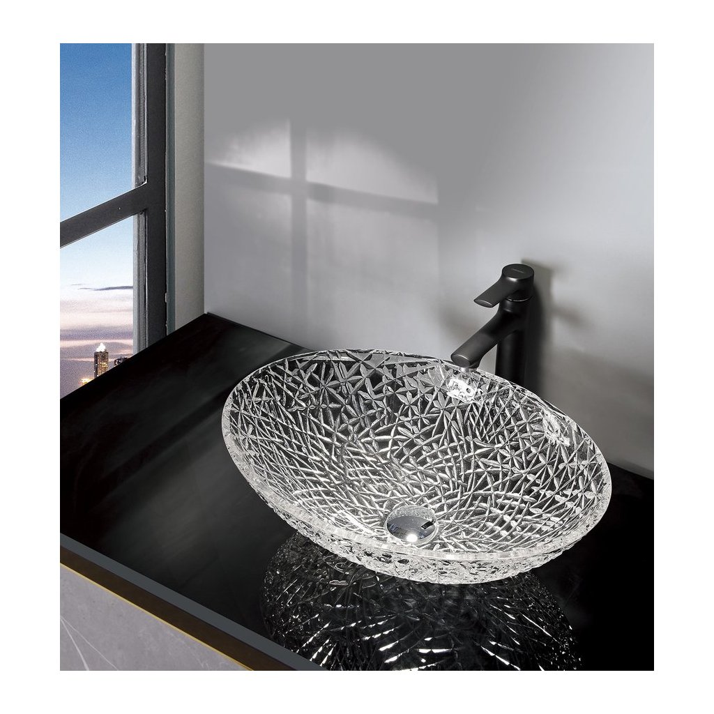 Sapho, PURUS gravírované sklenené umývadlo na dosku 50x36 cm, číre sklo, TY305CL