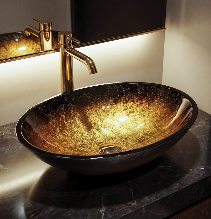 Sapho, SELVA sklenené umývadlo na dosku 50,5x38cm, zlatá, TY319