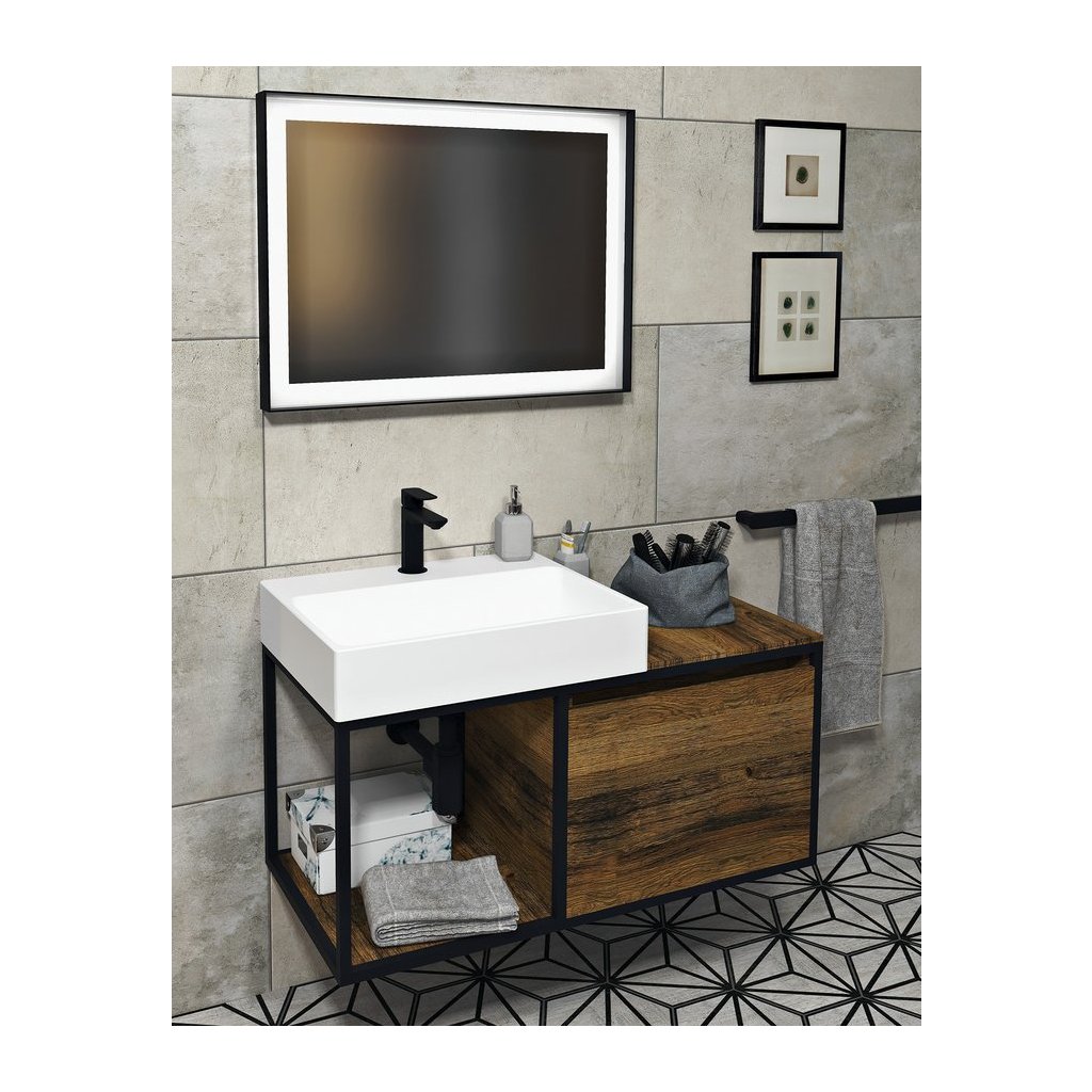 Sapho, SORT zrkadlo s LED osvetlením 60x80cm, bezdotykový IR senzor, 2700-6500K, čierna mat, ST080S