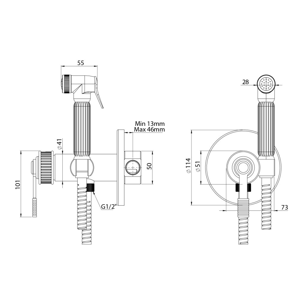 Sapho, VERSI podomietková batéria s bidetovou spŕškou, chróm, RV013