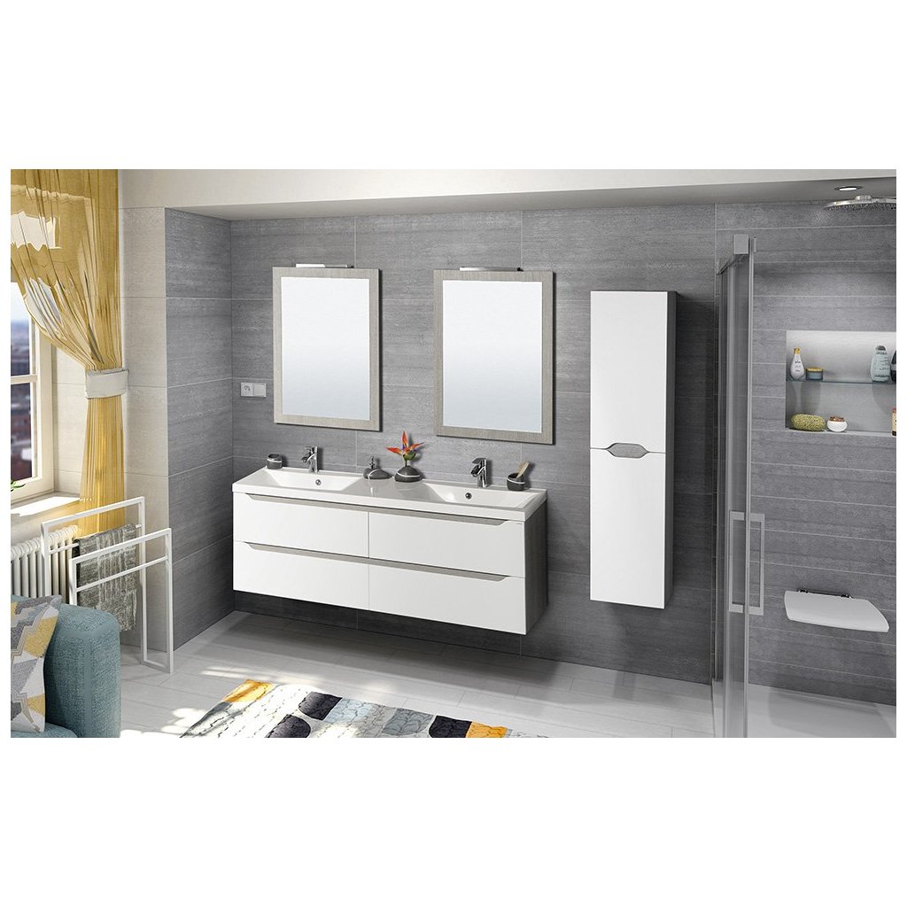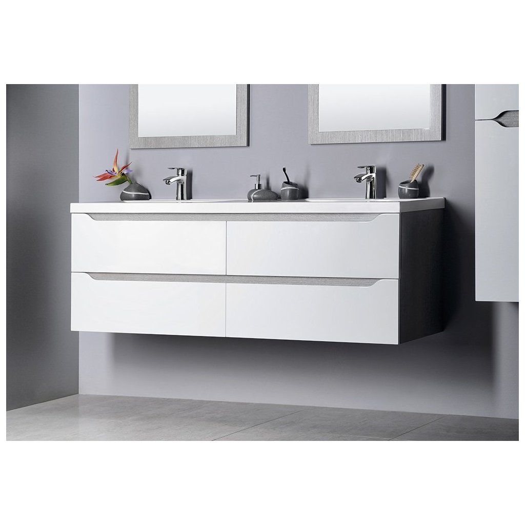 Sapho, WAVE dvojumývadlová skrinka 149,7x50x47,8cm, biela/dub collingwood, WA150-3019