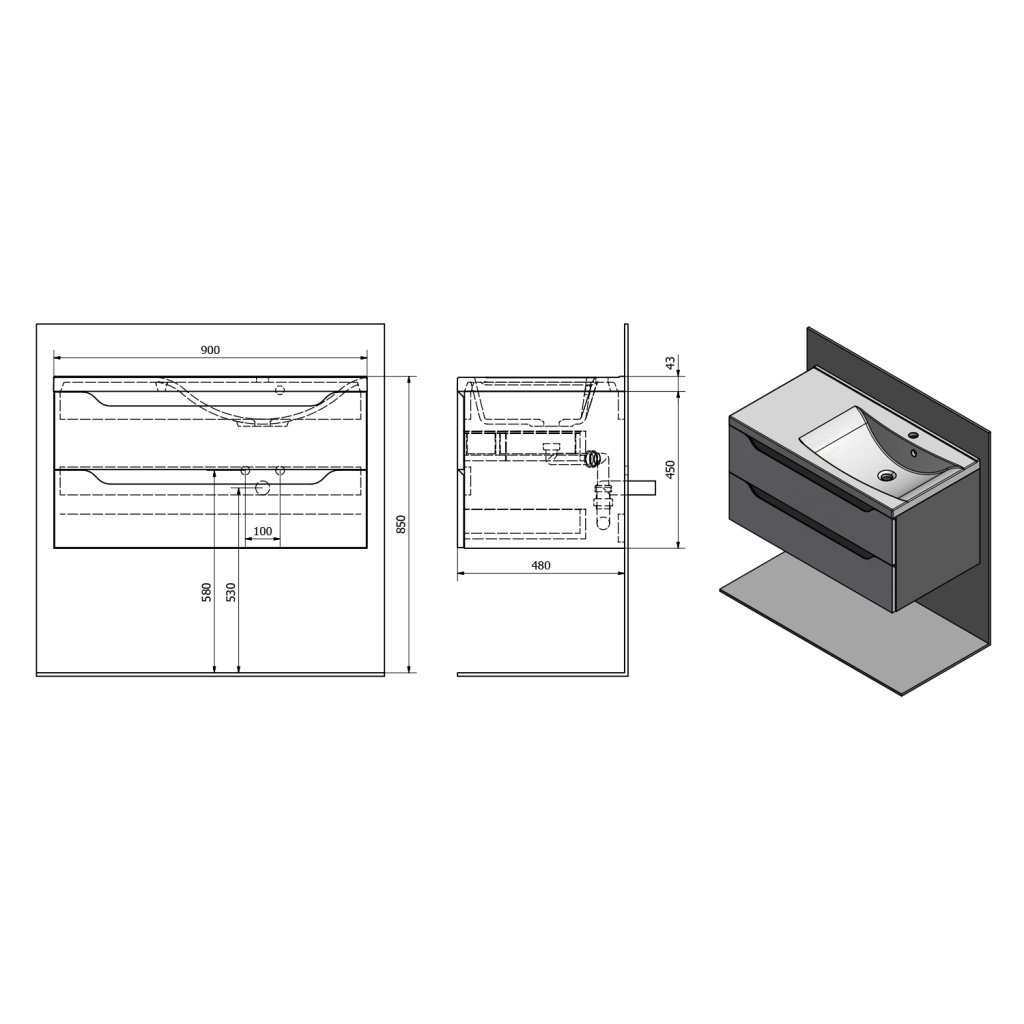 Sapho, WAVE umývadlová skrinka 89,7x45x47,8cm, pravá, biela/dub collingwood, WA093-3019