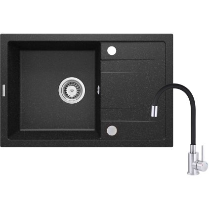 Mexen Diego, 1-komorový granitový drez 49x49 cm a kuchynská batéria Telma, čierna, 6512-77-670200-70