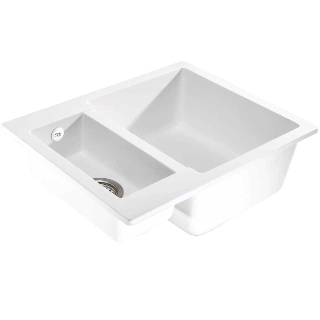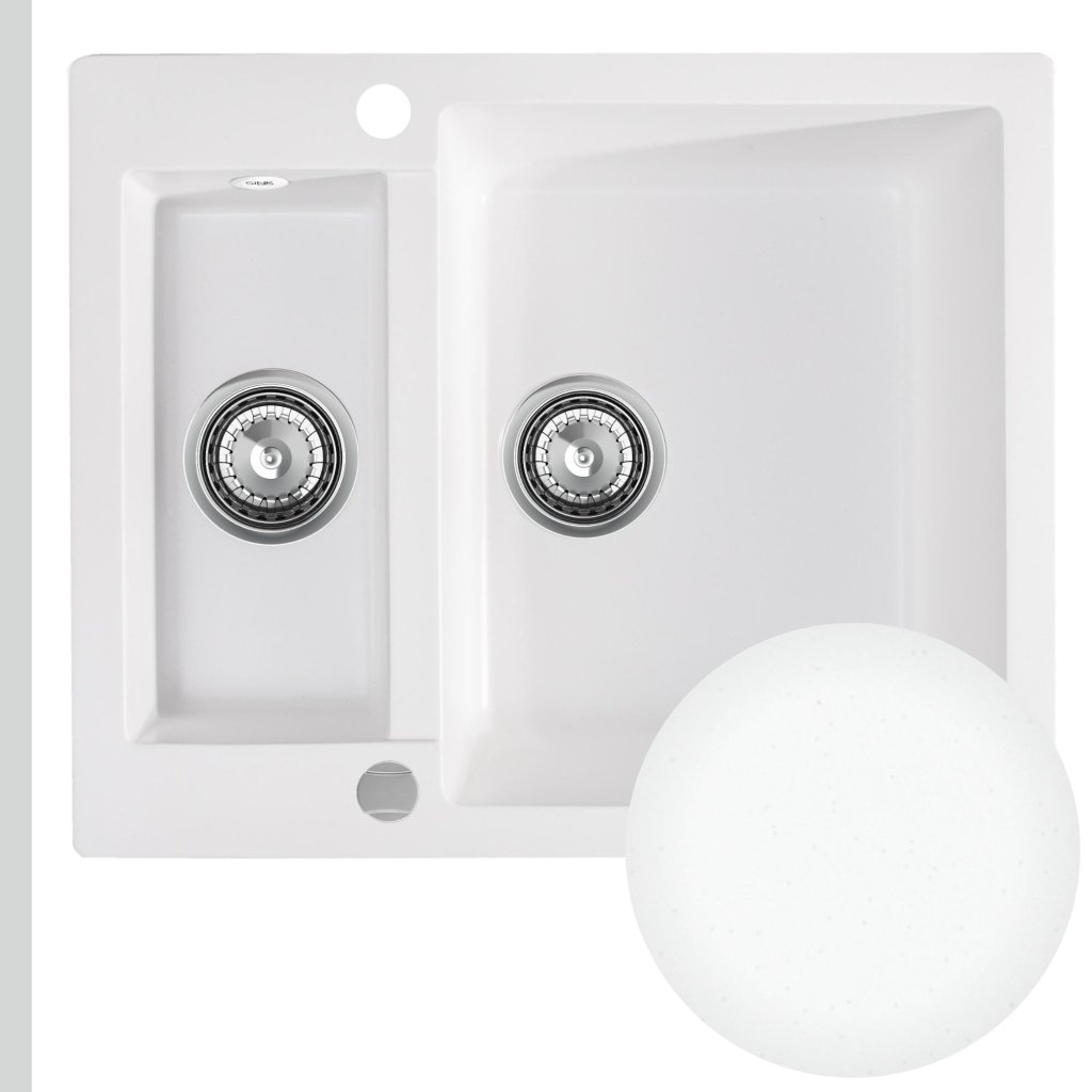Sink Quality Ferrum, kuchynský granitový drez 605x495x210 mm + chrómový sifón, biela, SKQ-FER.W.5KBO.X