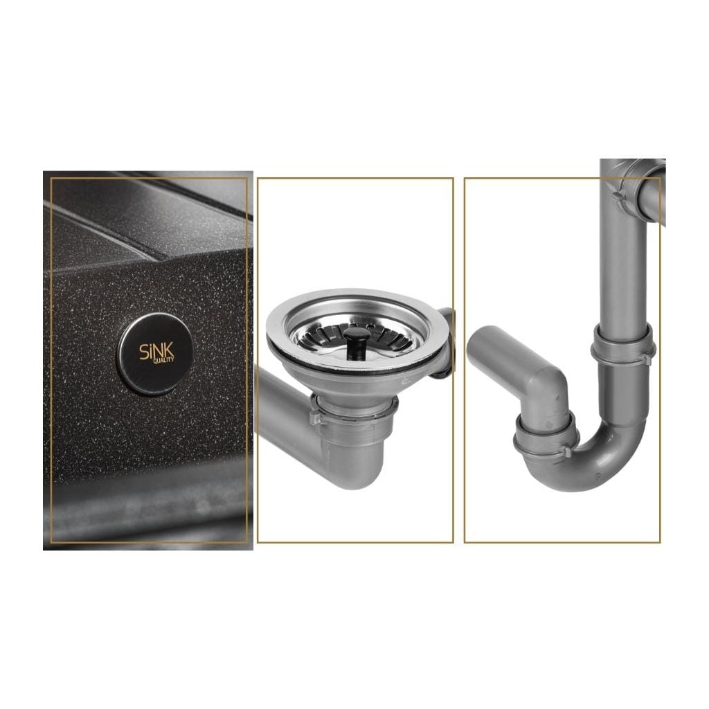 Kuchynský drez má 2 továrensky vyrezané otvory pre batériu a dávkovač saponátu. V prípade, že neplánujete dávkovač saponátu, otvor je možné jednoducho zaslepiť priloženou krytkou, ktorá je súčasťou produktu). Okrem toho má výrobok otvor pre sifón (priemer 90mm) a prepadový otvor. Vďaka tomu je montáž rýchla a nevyžaduje profesionálne vybavenie.