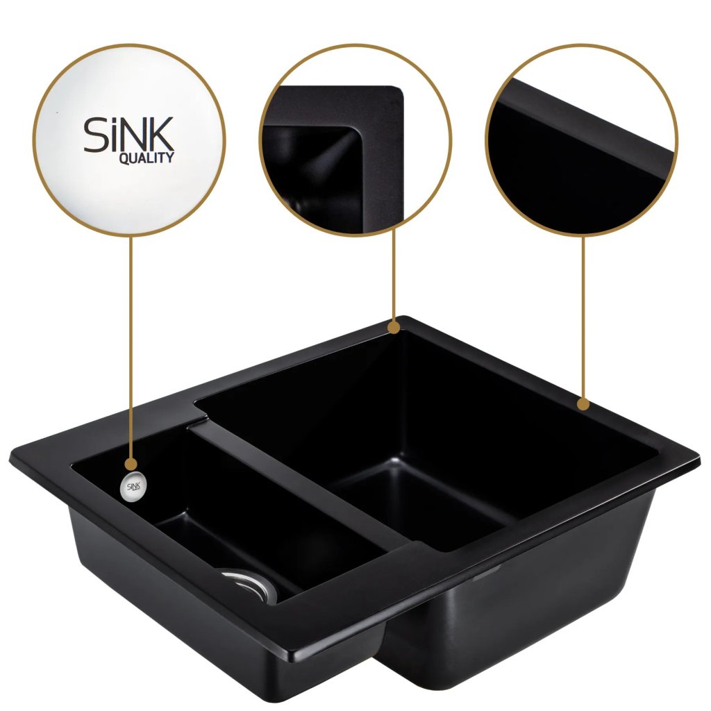 - Nano-granitový drez s 2 továrensky vyvŕtanými otvormi (otvor pre batériu a dávkovač saponátu)